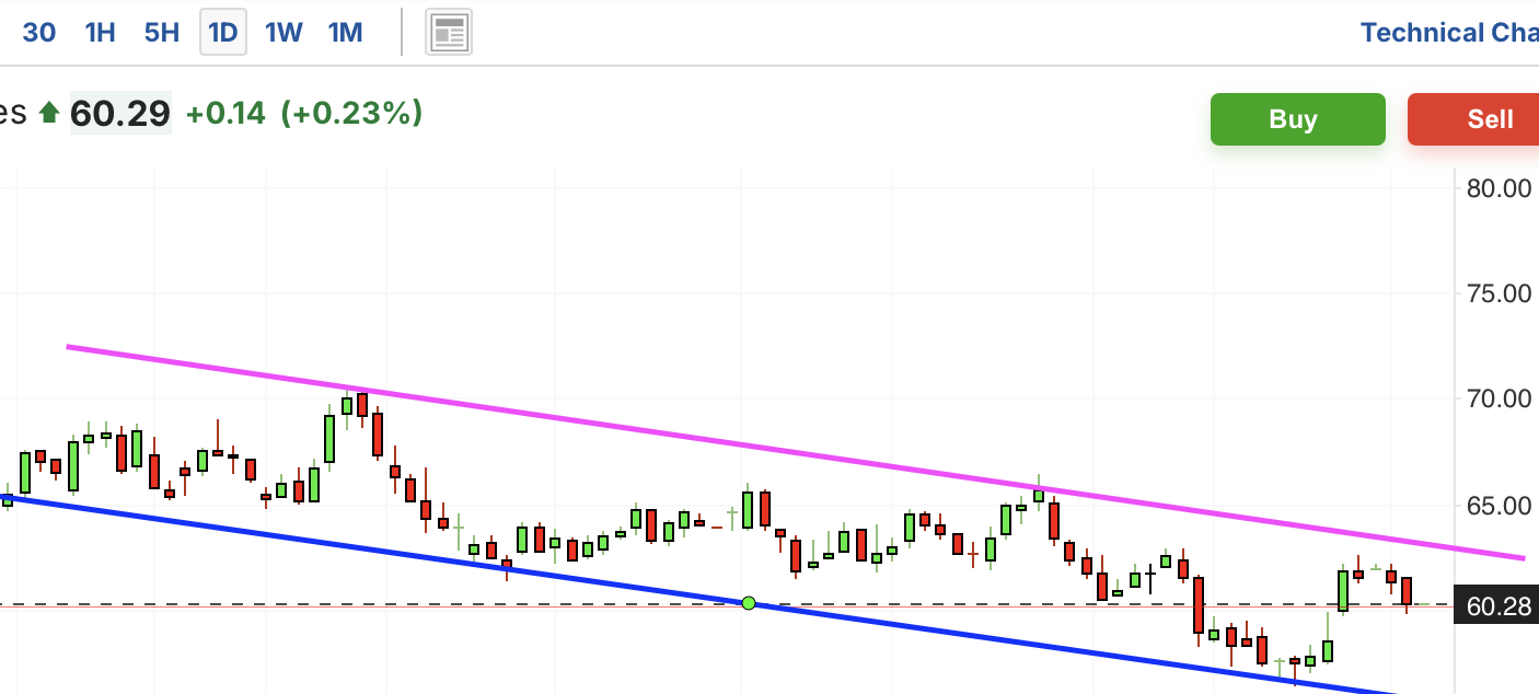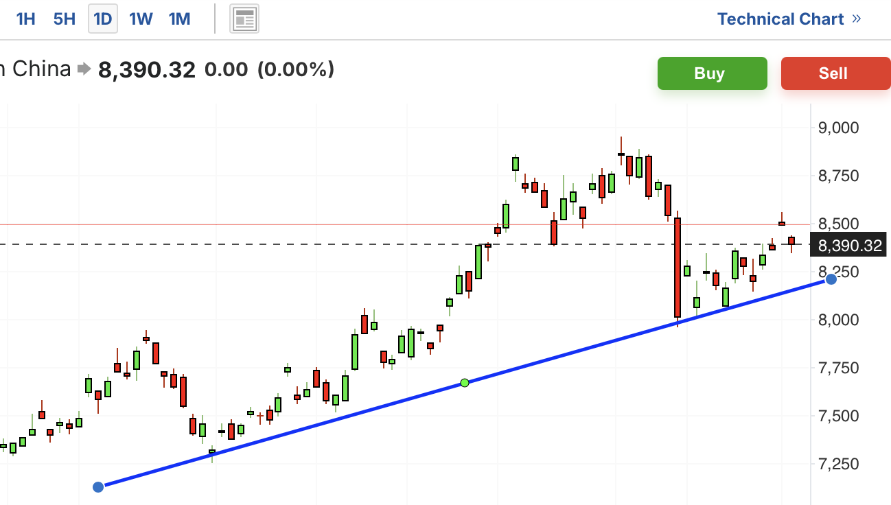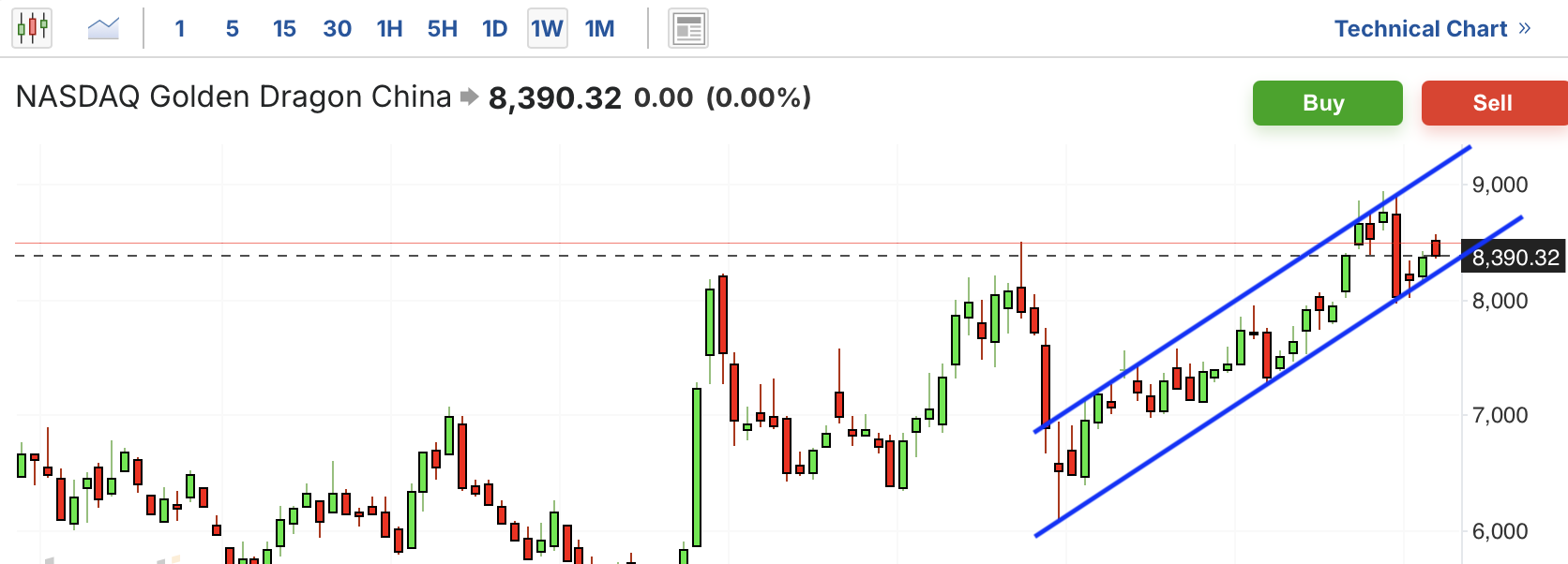 中概股最近回调至上涨趋势线附近止跌企稳,并横盘震荡,这几日尝试拉升后很快跌回,继续盘整形态。中期趋势在上升通道中。