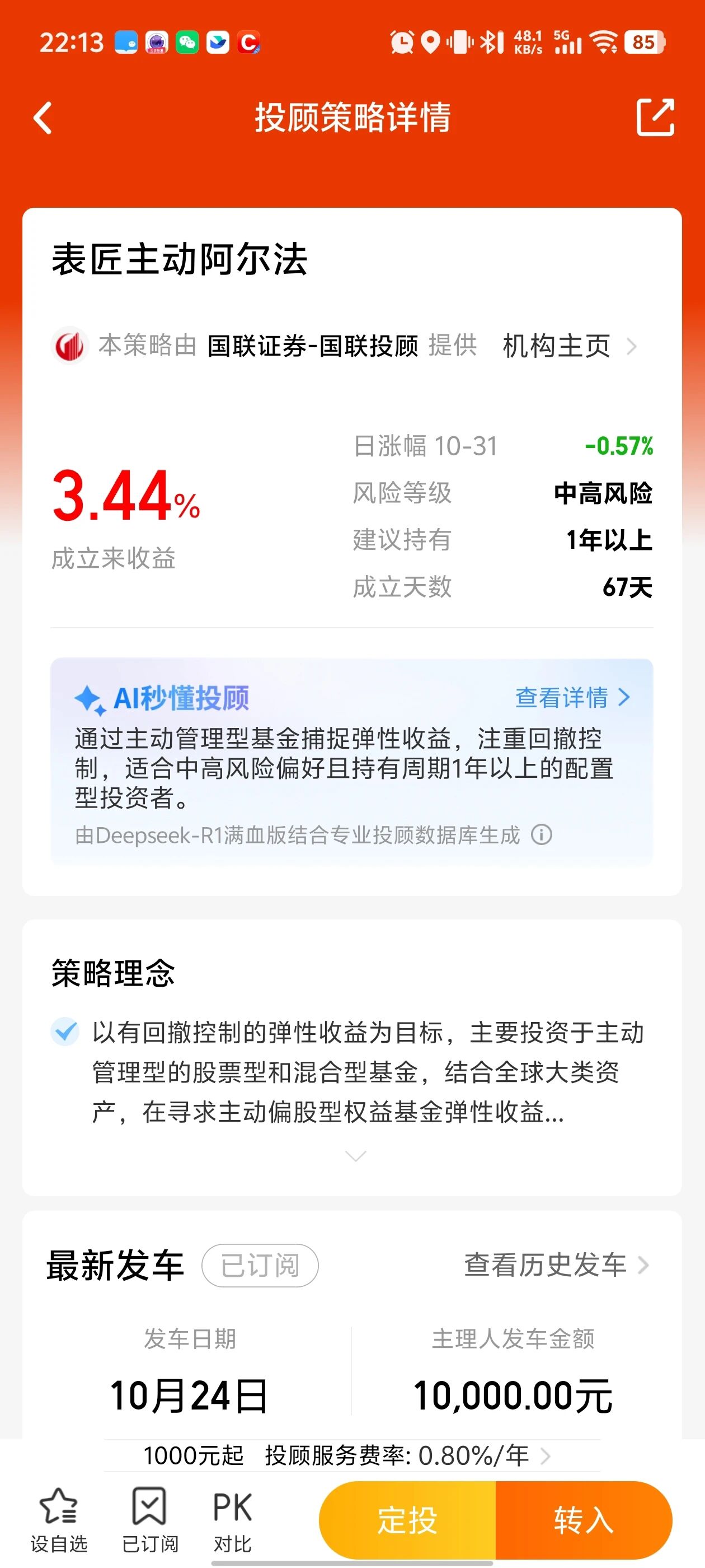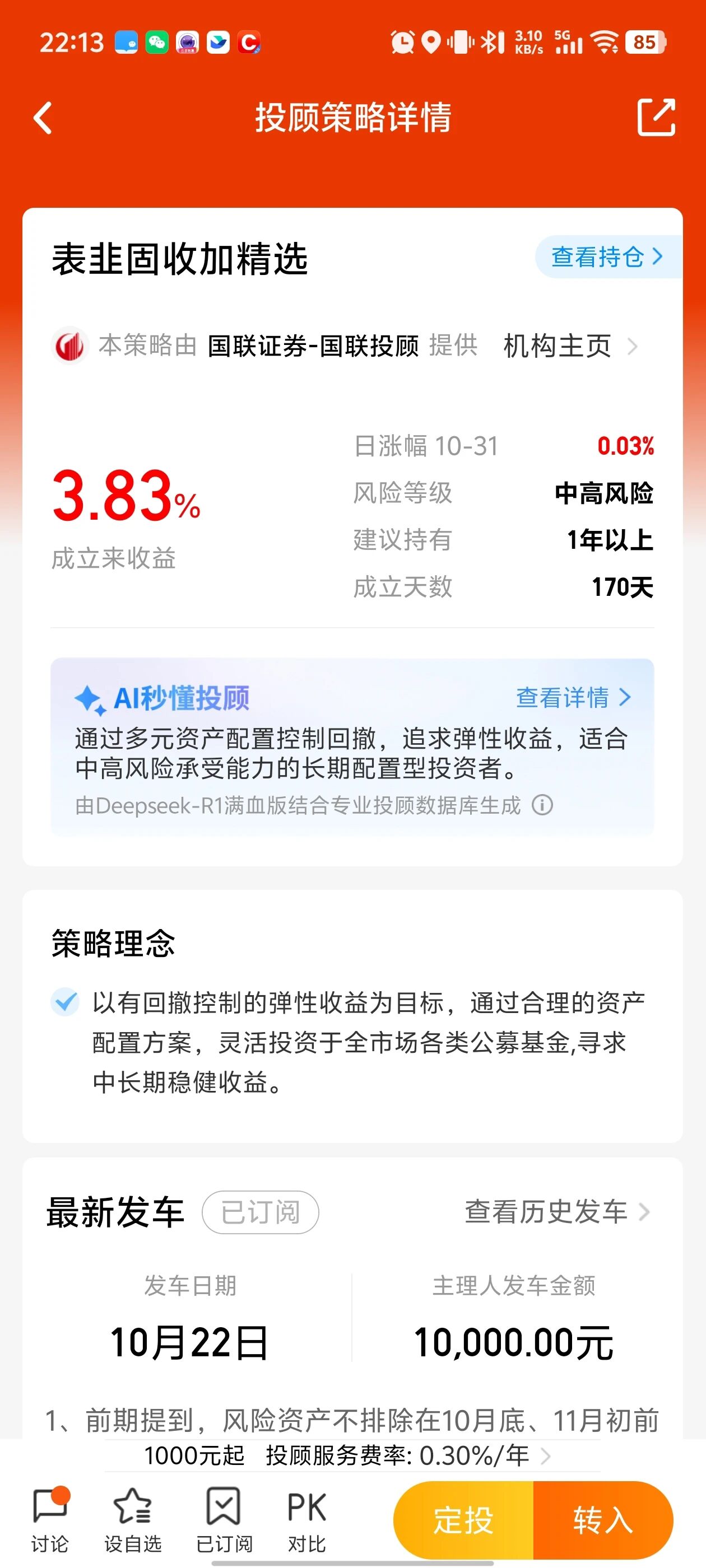 阶段三:在今年考虑到资金量开始逐渐增加,以及管理的难度和精力,开始让老师直接跟投我跟投的投顾组合,表韭全球+表韭固收加+表匠主动阿尔法。