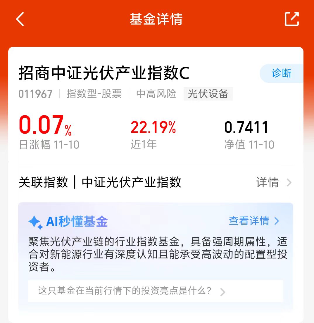 光伏板块近期表现还不错,今天继续上涨,近期市场波动加剧,三季报光伏板块各环节利润大多有所好转,$招商中证光伏产业指数C(OTCFUND|011967)$近一月涨了14.81%,近三个月涨了45.46%,近六个月涨了61.67%,这个方向长期发展前景还不错,我准备分批布局了!