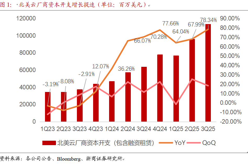 有数据有真相,2025Q3四家云厂商资本开支总计为1133.22亿美元,同比+78.34%,高于市场预期10.04%。同时2022-2024年合计资本开支的复合年均增长率CAGR为27.7%。
