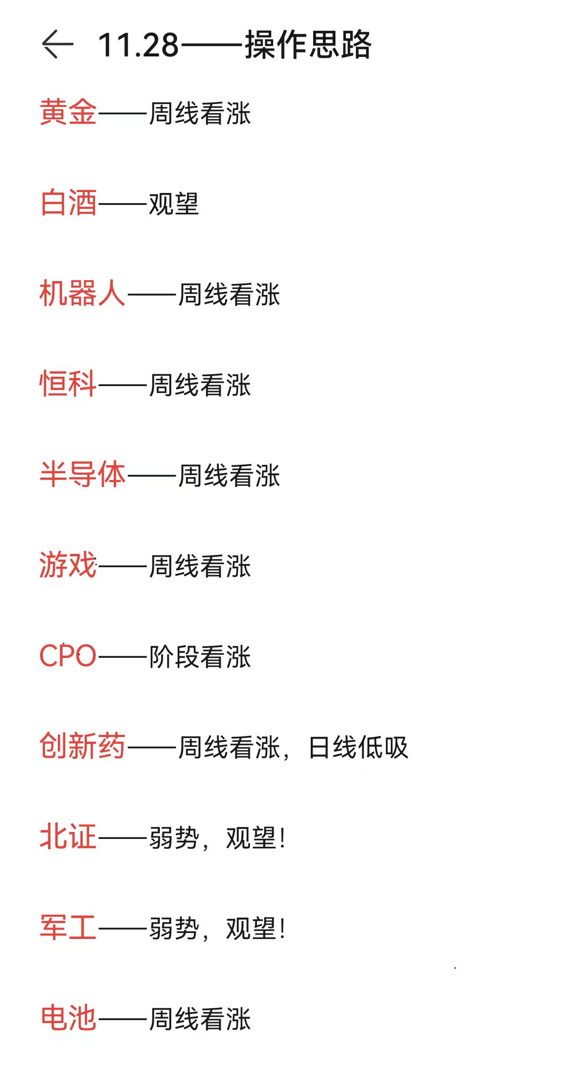 港股创新药:技术面周线看涨趋势不变,早盘药明康德、翰森制药这些龙头虽然下跌,但属于日线级别的调整,可做低吸。创新药是长期赛道,而且港股创新药估值处于低位,和科技股一样被外资看好,麦爸选择持仓待涨。