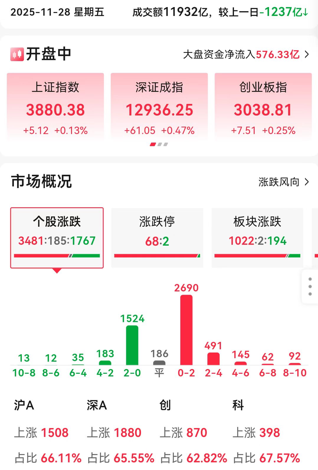 今日A股市场低开高走,三大指数全线翻红。截至午间收盘,超3500只个股上涨,市场呈现普涨格局。尽管指数涨幅不大,但板块分化明显——钛白粉、能源金属板块强势领涨,而医药相关板块则集体回调。早盘两市低开后震荡回升,半日成交额9763亿元,较上个交易日缩量超过1100亿元,这也预示着今天的午后回落结局。