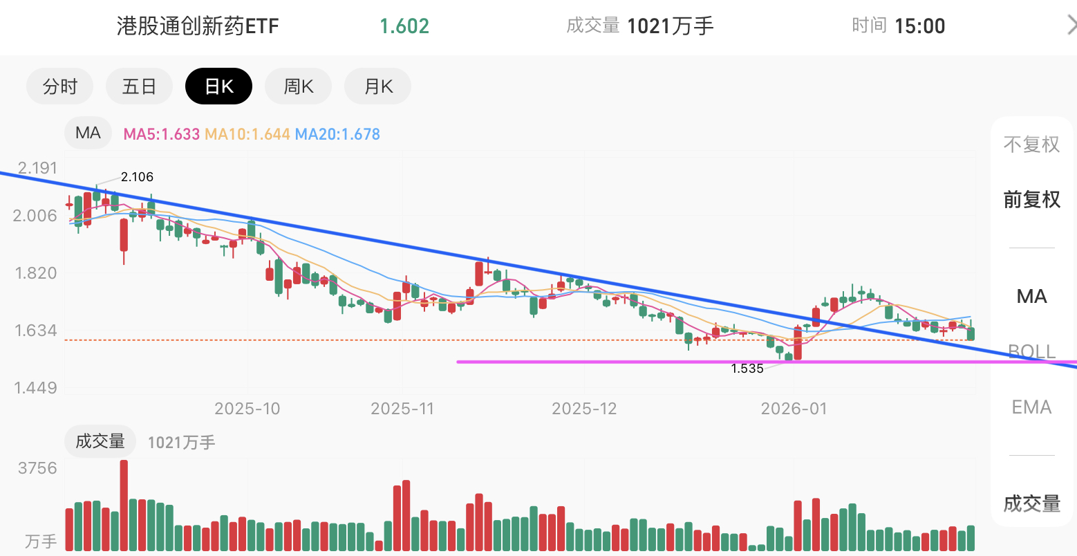 创新药(港股通创新药):目前深陷于一个斜率极陡的下行通道之中。K线近期表现出“加速赶底”迹象,重心持续刷新阶段性低点。当前股价显著远离上方均线组,处于严重的深度超卖状态。底部成交量开始在地量水平出现波段性反复,显示空头释放已进入末期。多头入场信心尚不稳固,仍需等待一个明确的放量止跌信号出现。