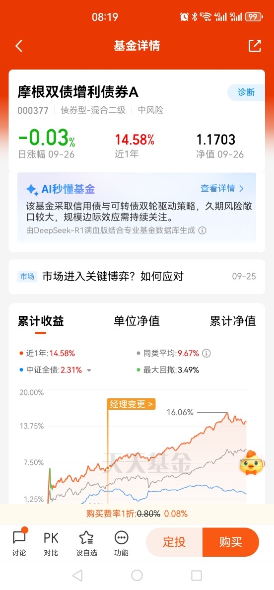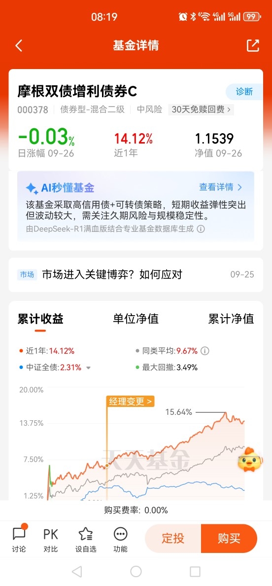$摩根双债增利债券A$ $摩根双债增利债券C$ $摩根双债增利债券D$持仓用稳健的 信用债打底,利用可转债的股债双重属性增强收益,可谓是稳中求利,可转债具备股和债的“双重属性”,可谓是“进可攻、退可守”。