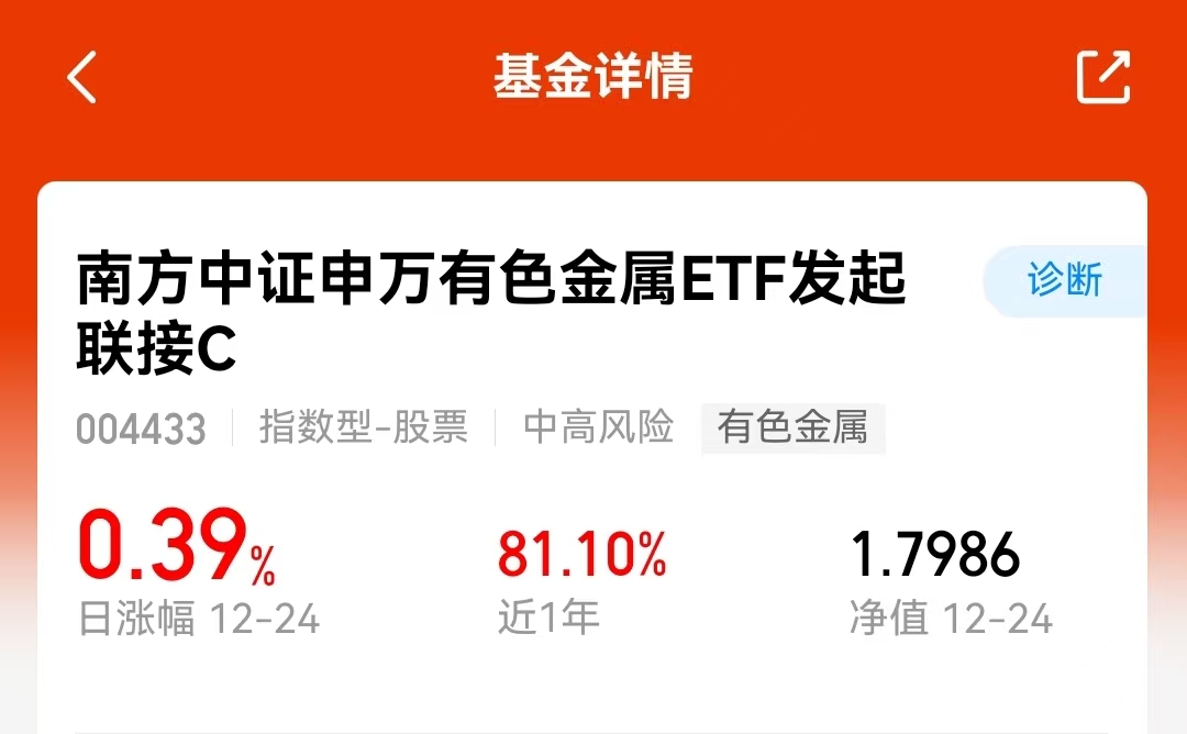 没犹豫,买了点$南方中证申万有色金属ETF发起联接C$(004433)。投资有时要顺势,今年以来这个“势”在有色金属板块很明显,整体80%多的涨幅就是证明。我选这个产品是因为它直接挂钩行业指数,清晰明了。现阶段,无论是制造业恢复还是一些新兴产业发展,都可能带来持续需求。基金近六个月涨了66%,波动中走强。我觉得现在可能还不是行情的终点,所以今天先参与一部分。#新年观察局:2026我看好的投资赛道#