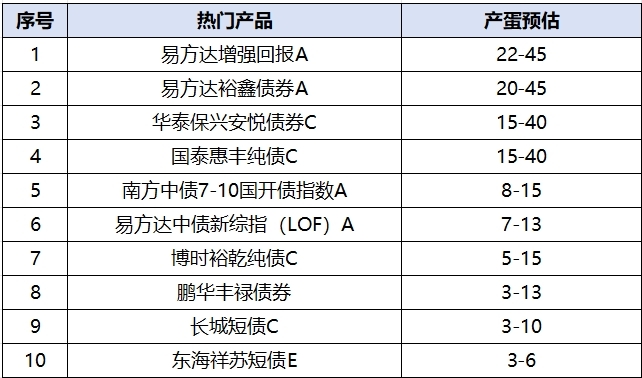 热门产品产蛋预估:(根据16:00行情预测,仅供参考,以实际产蛋为准)