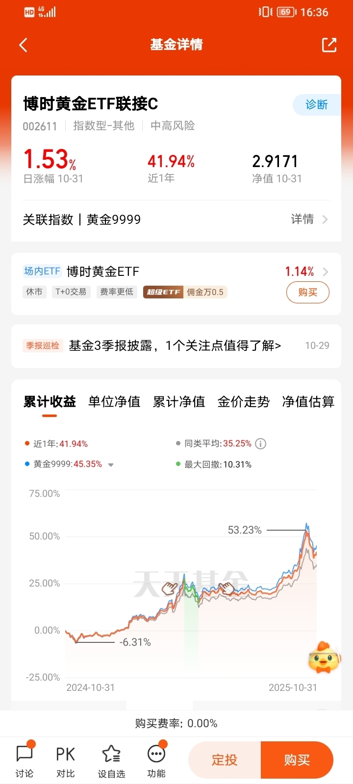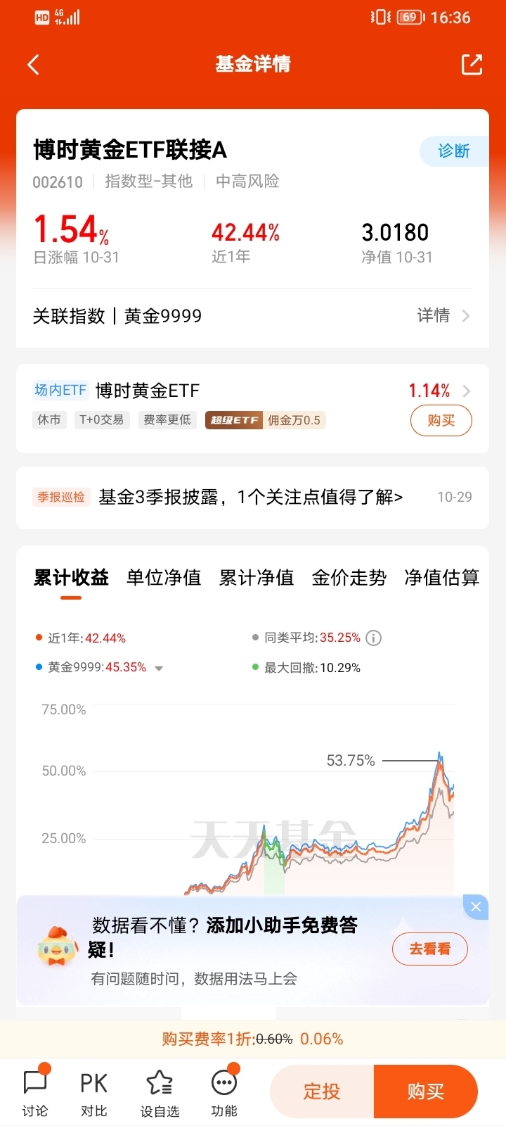 说到博时黄金ETF联接基金,它可是个不错的选择。它紧密跟踪我的价格走势,通过投资于对应的黄金ETF,让投资者能够轻松参与我的市场。而且,它的投资门槛低,10元甚至1元就能起投,非常适合小额投资者和新手入门。此外,它的费率也相对较低,管理费、托管费等费用都控制在合理范围内,降低了投资者的成本。