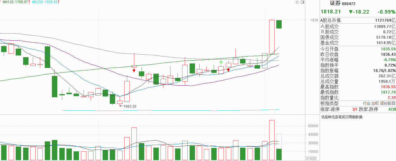 证券昨天大阳反弹,资金流入十分明显,而且周一中阳反弹已经突破半年线,连续两天中阳以上级别的反弹,当然是新增资金流入的信号,上升趋势已形成,而且前期完全没有任何主力控盘现象,新增资金筹码成本也是看得见的,如果主力真要向上推进,我认为5天线是不能失守的。今天证券窄幅震荡我认为符合预期,毕竟没有看到过证券可以连续中阳直接上怼(2014年除外),在这个阶段横向震荡等待5天线上,如果期间探底5天线,或许就是比较好的潜伏机会。当然,如果这两天进场资金并不愿意向上走,又像前期那样横着走两周也是可以的,所以我认为证券是不能追涨的,只能以低吸应对。