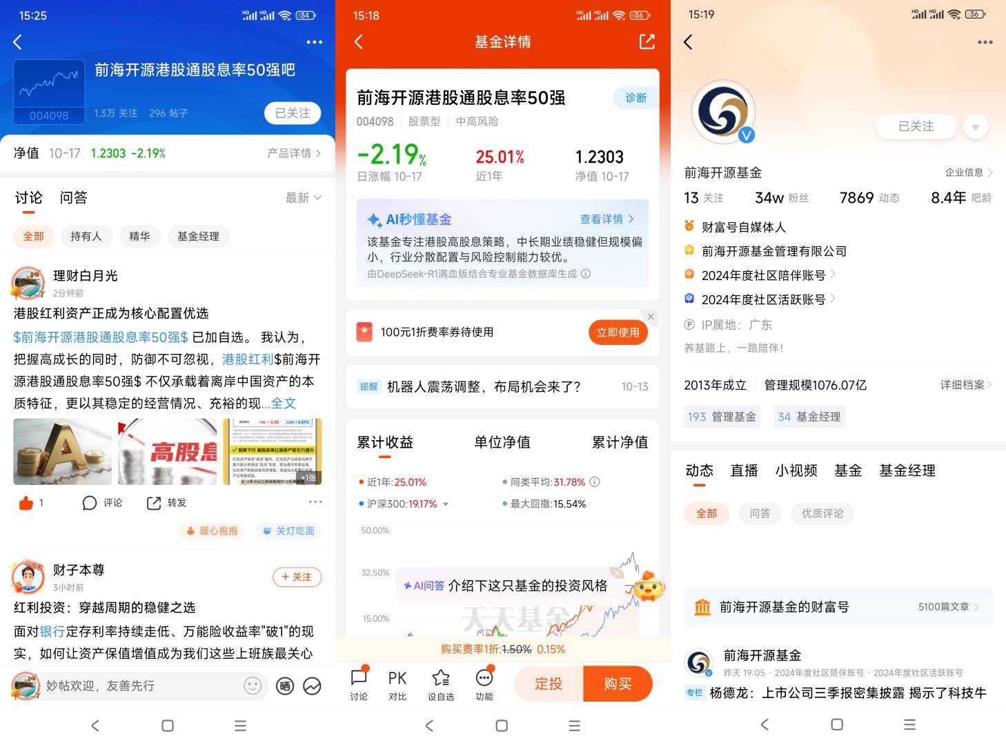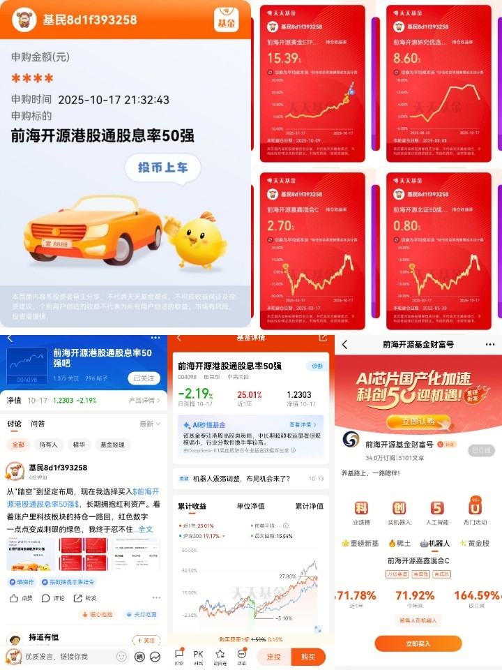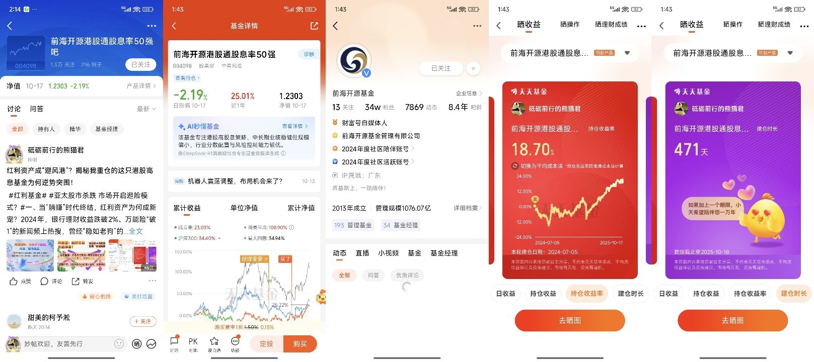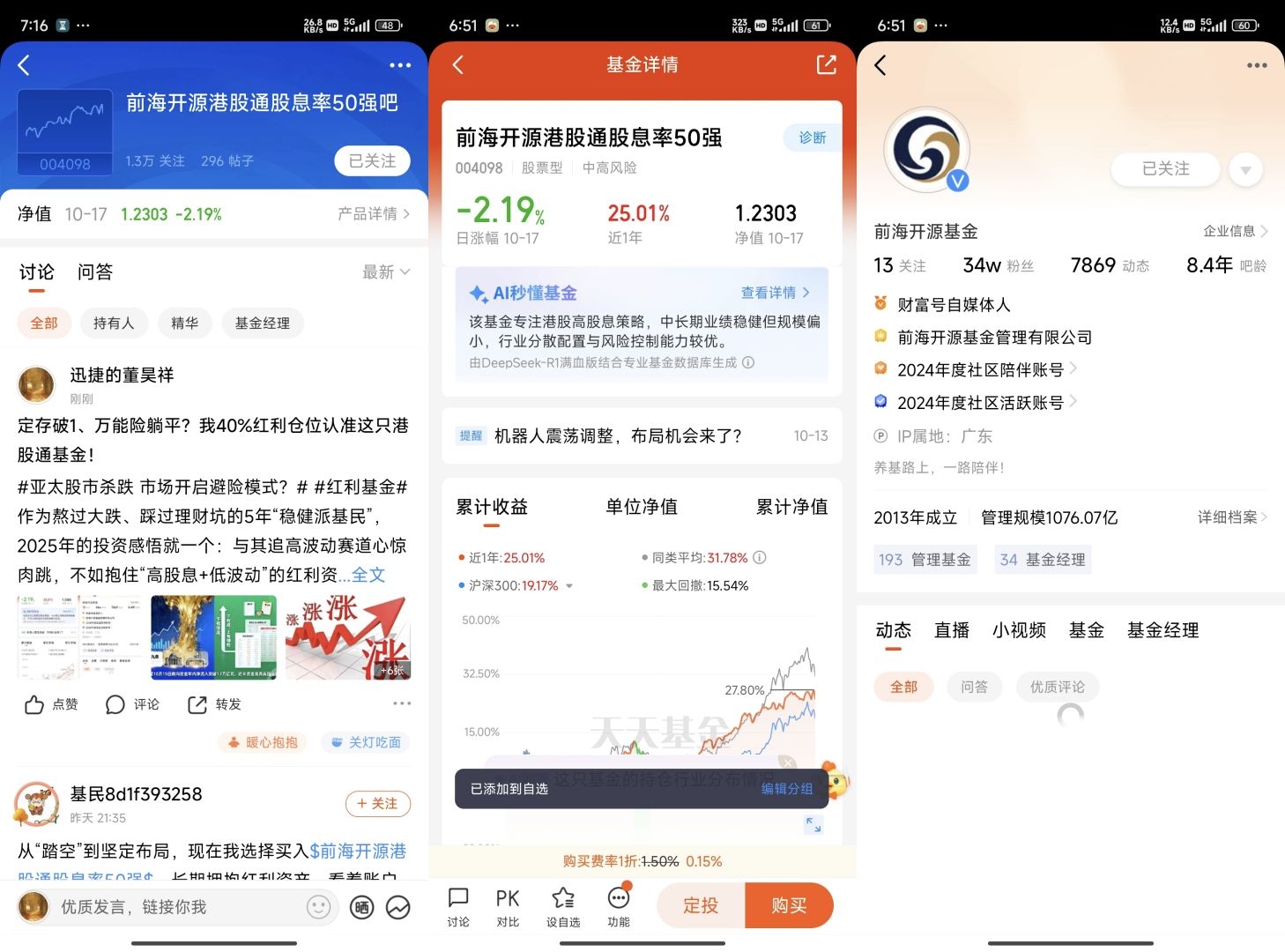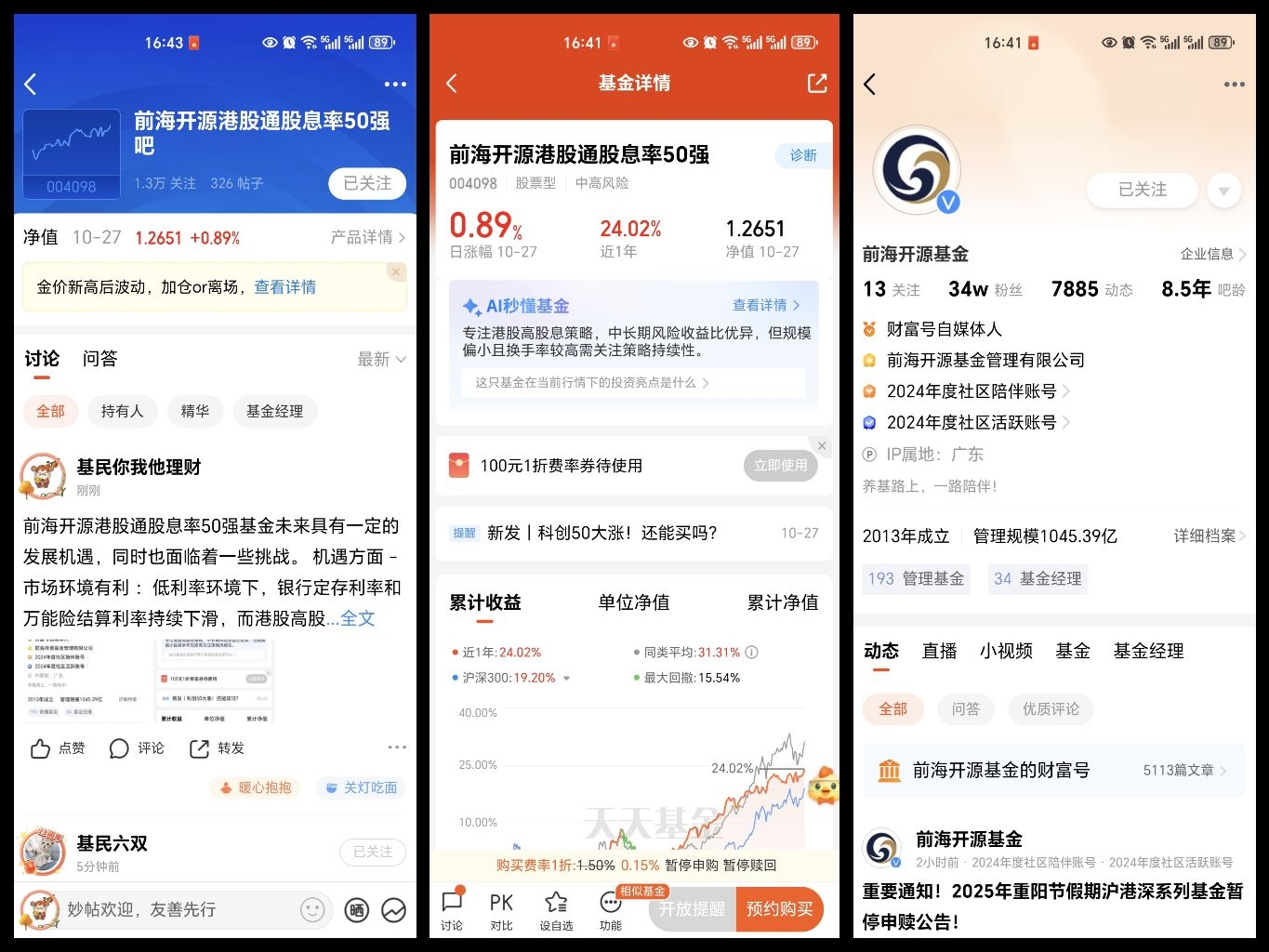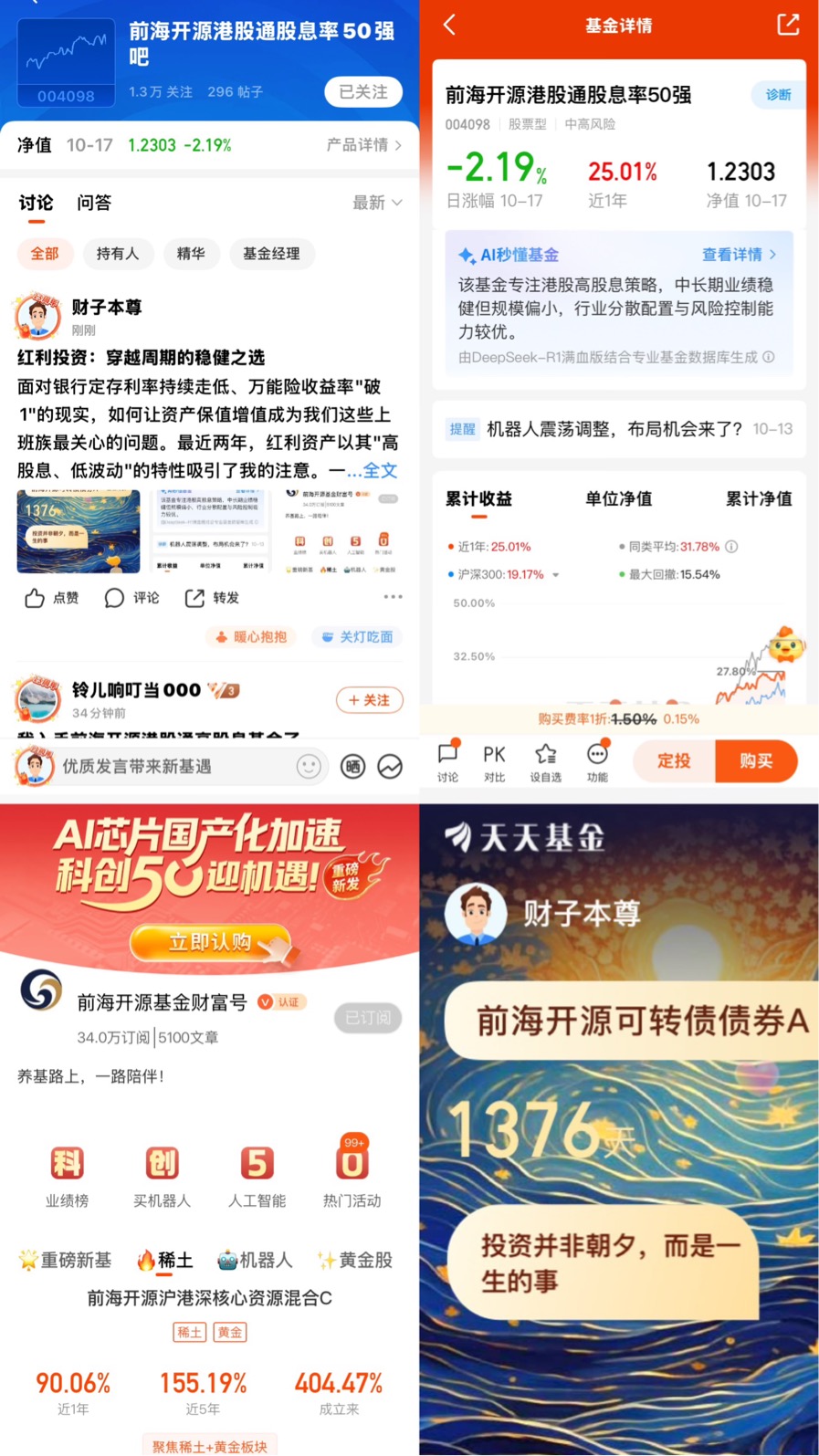 第二步:进入$前海开源港股通股息率50强(OTCFUND|004098)$的基金吧,晒出加自选截图,并聊聊你对红利资产的观点,或者对该基金各方面的点评~(发布持有体验仅限于在活动发布前已持有产品的用户)