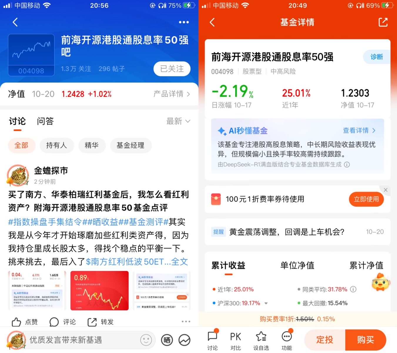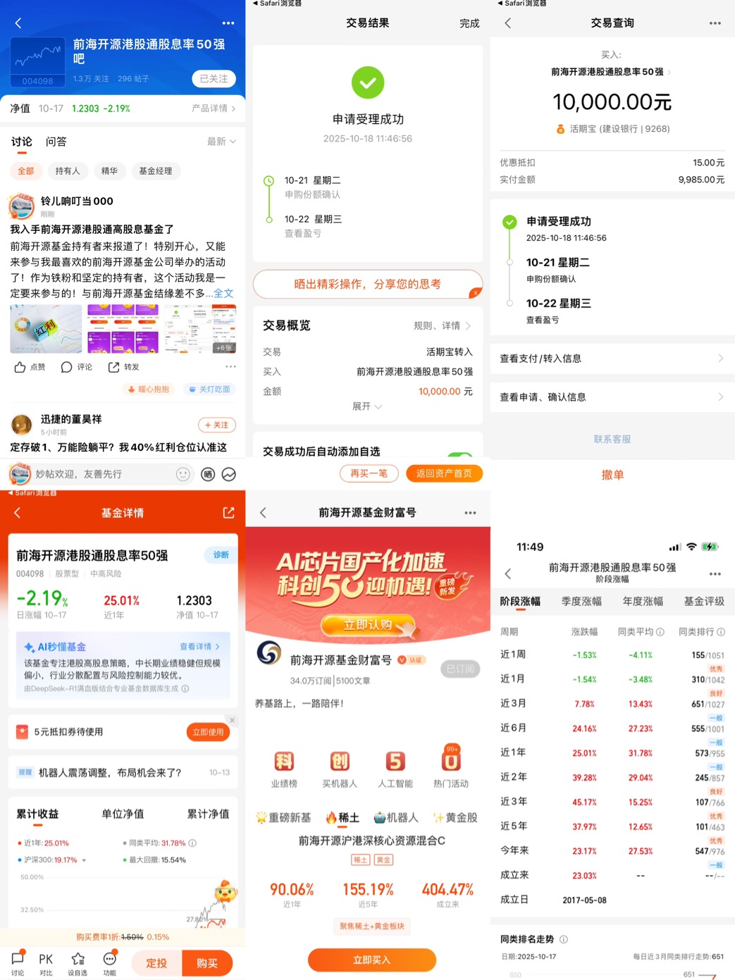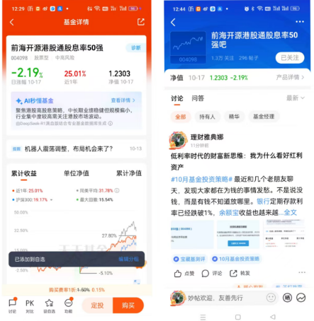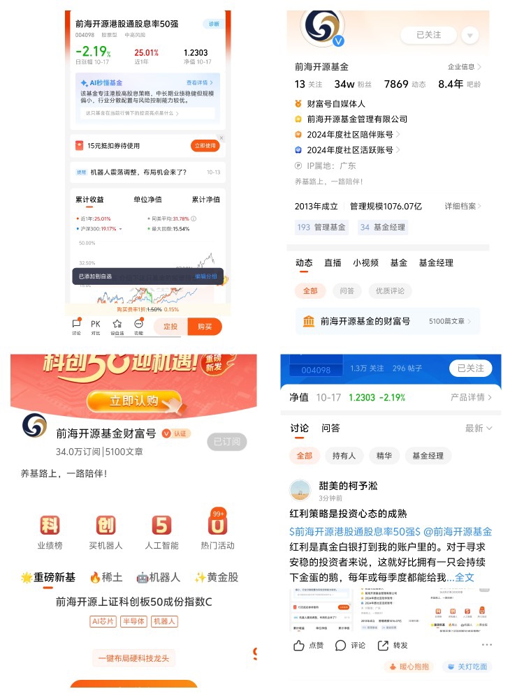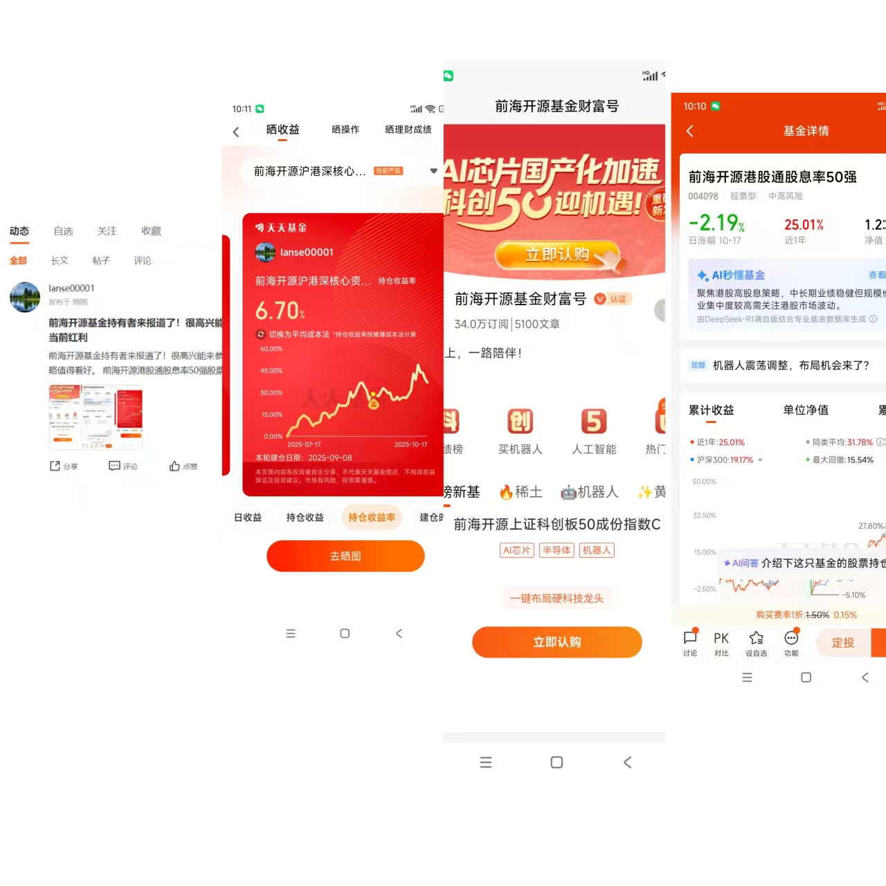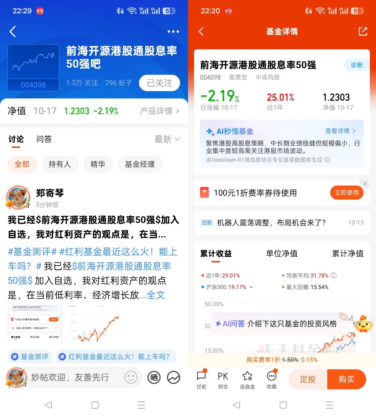 第二步:进入$前海开源港股通股息率50强(OTCFUND|004098)$的基金吧,晒出加自选截图,并聊聊你对红利资产的观点,或者对该基金各方面的点评~(发布持有体验仅限于在活动发布前已持有产品的用户)