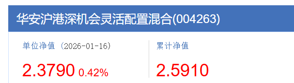 华安沪港深机会灵活配置混合(004263)上周五涨了0.42%