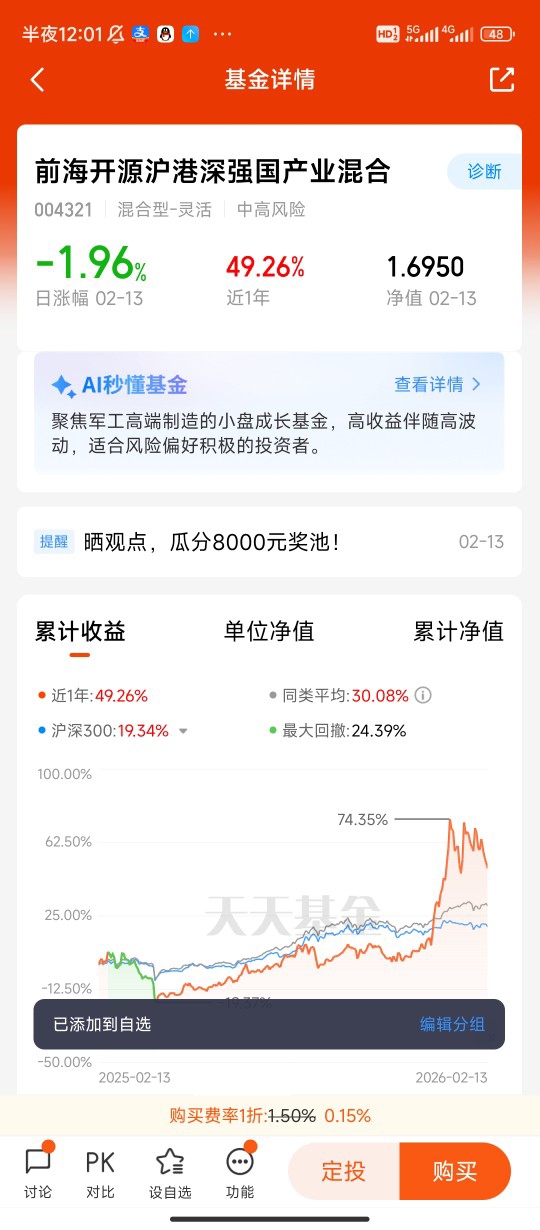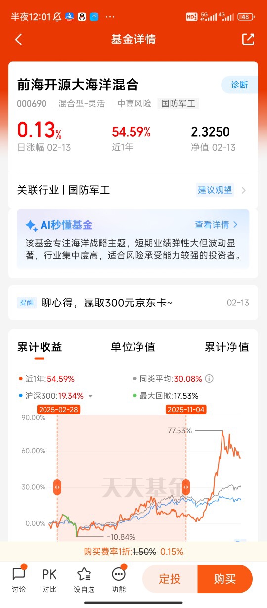 对普通投资者来说,直接买个股门槛高、波动大、研究不过来。借基金布局更稳妥,我重点关注前海开源沪港深强国产业混合与前海开源大海洋混合。这两只基金都聚焦高端制造、航天军工、海洋科技等方向,贴合商业航天与强国产业主线,选股覆盖产业链核心公司,能跟上行业红利,分散个股风险。