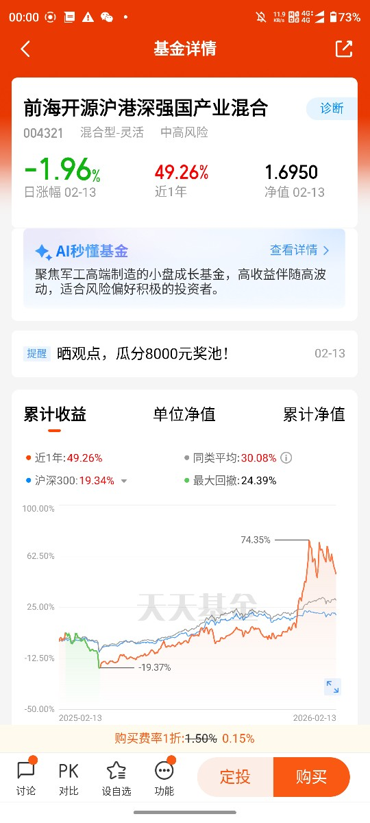 前海开源沪港深强国产业混合,是布局商业航天的核心选手。基金聚焦强国产业,重仓航天电子、中国卫星、卫星通信等商业航天核心标的,覆盖火箭、卫星、终端、运营全链条,精准抓住赛道龙头。基金经理深耕科技与高端制造领域,对行业趋势、个股价值把握精准,能在震荡市中调整仓位,既抓住行业成长红利,又控制波动。不管是低轨卫星组网,还是可回收火箭突破,这只基金都能第一时间分享产业红利,是布局商业航天的优质工具。