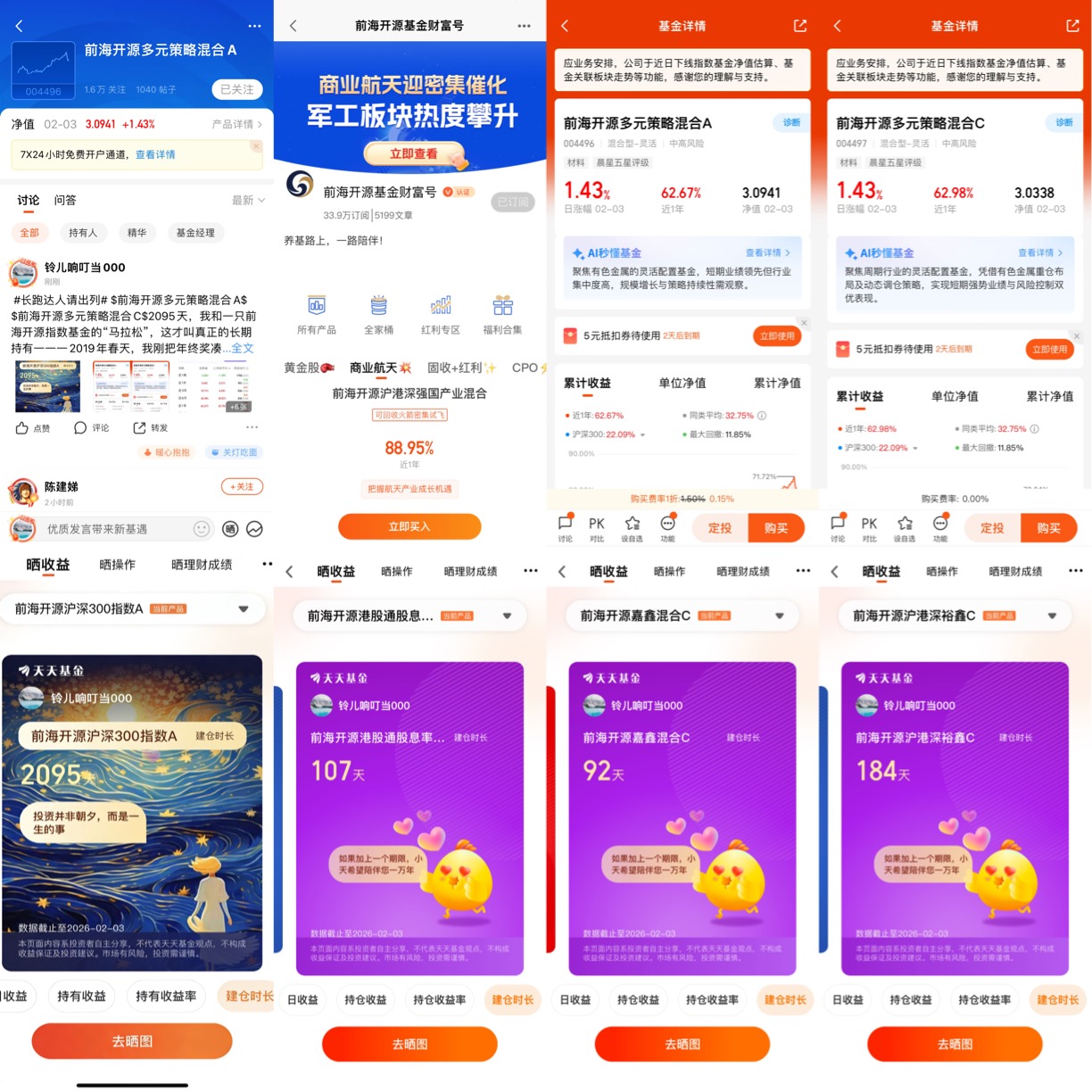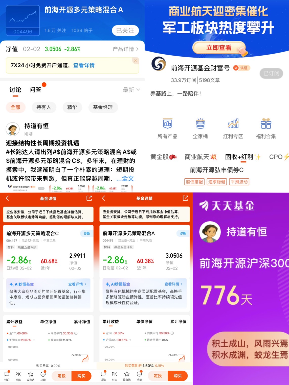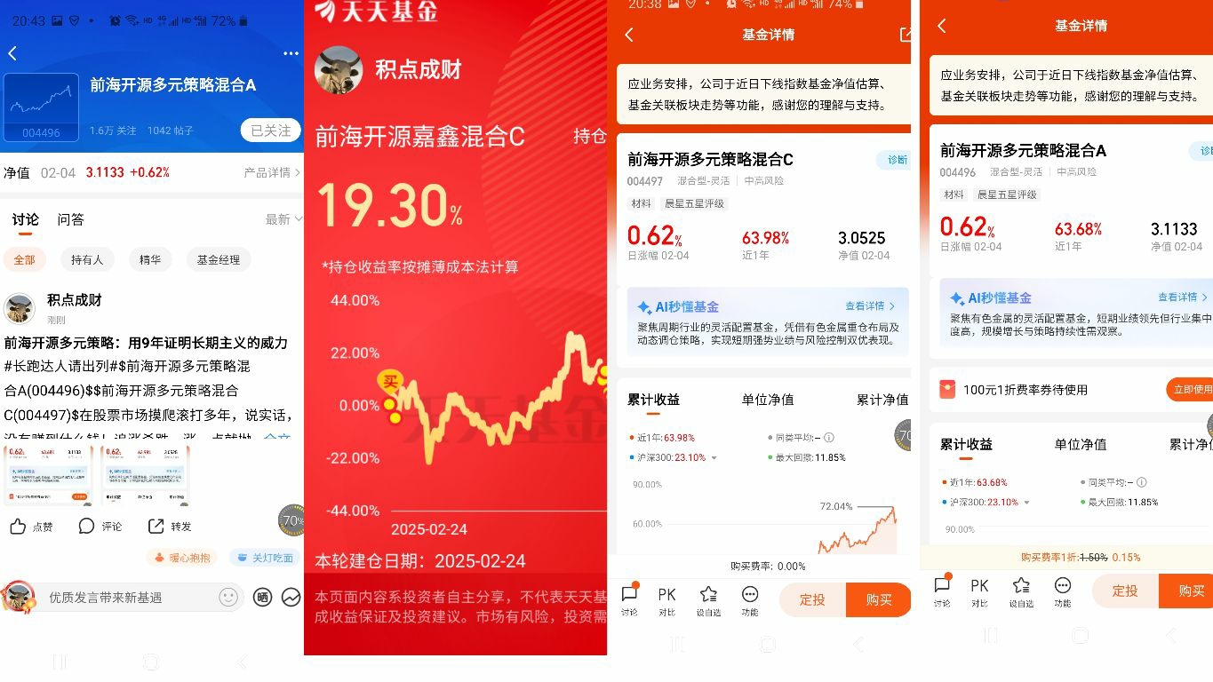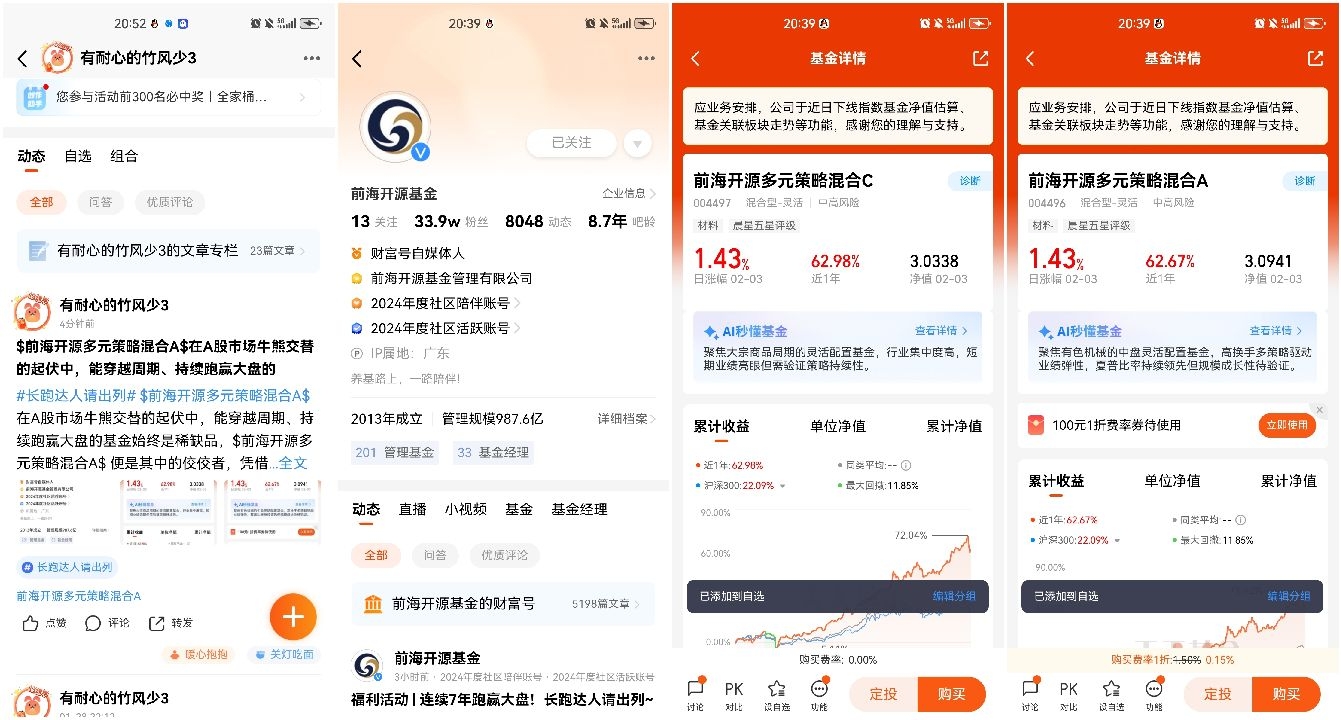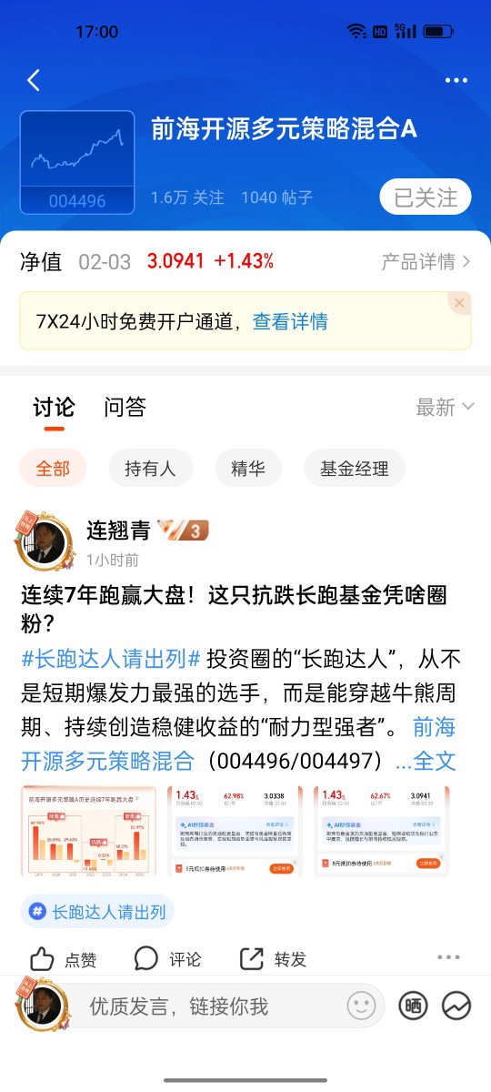 例:#长跑达人请出列#+被前海开源多元策略混合这只基的表现亮眼到了!!!穿越牛熊,连续7年跑赢大盘!!!前海开源多元策略混合策略稳定,坚持"低估值、分散配置、防守与进攻结合",严格遵循投资纪律,长期持有以收获发展红利!+加自选截图+$前海开源多元策略混合A(OTCFUND|004496)$
