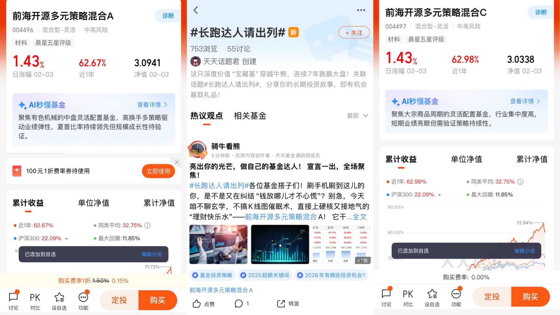 1、将$前海开源多元策略混合A(OTCFUND|004496)$或$前海开源多元策略混合C(OTCFUND|004497)$加入自选;