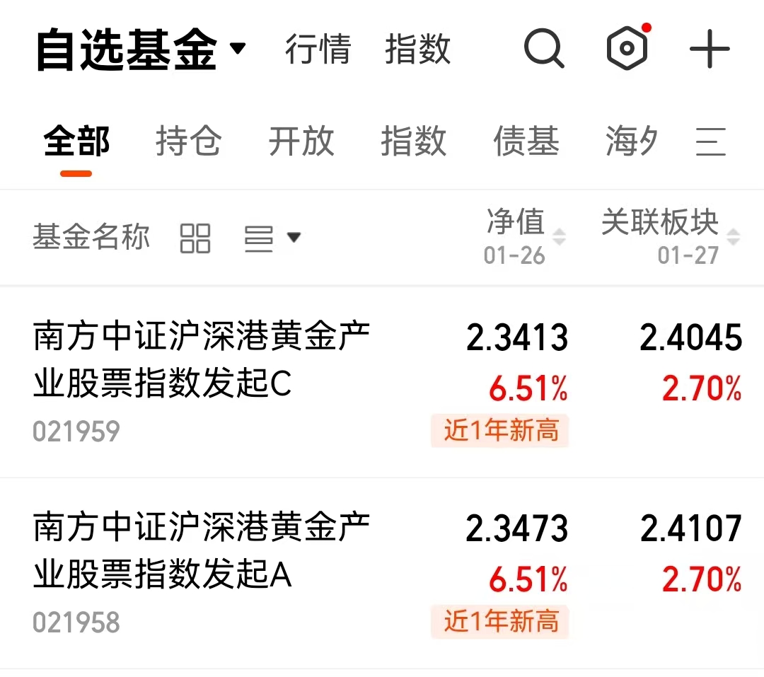 买黄金到底哪种方式最省钱?我算过账,买金条每克要加价十几块,卖的时候还要扣损耗费,一买一卖成本就上去了。$南方中证沪深港黄金产业股票指数发起C$(021959)这种黄金产业链基金,管理费低,交易也方便,关键是弹性大。金价涨,那些挖金矿的公司赚得更多,基金涨得比金价还猛,近三个月涨了41%,同类排名第一。现在金价突破5000美元了,后面还有空间,想参与黄金行情,这种基金比直接买金划算多了。10块钱就能买,门槛低,不用操心保管。机会难得,别等涨上去了再后悔。#金价盘中突破5100美元大关!机构猛吹#