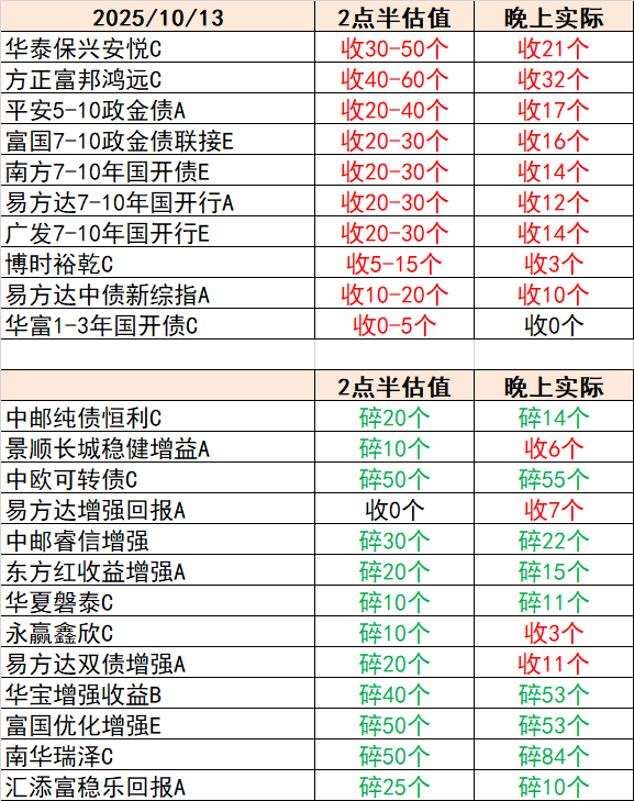 热门债基尾盘估算10.14——晓珠宝粉丝专享