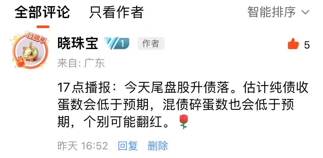 注意,如果播报后,债市尾盘拉升或者跳水,17点左右我会在估值帖子的评论区更新情况。