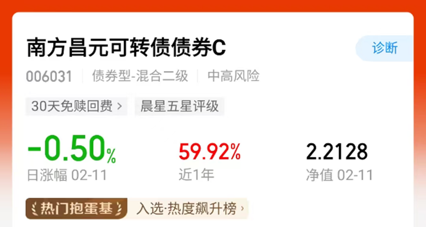 在这种震荡格局下,与其在个股的追涨杀跌中消耗心力,不如换个思路,关注一下高性价比的资产,比如我今天要聊的——$南方昌元可转债债券C(OTCFUND|006031)$