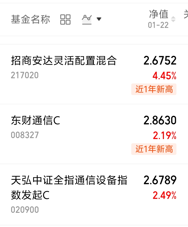 $招商安达灵活配置混合$ 昨日涨幅榜第一,涨幅4.45%,近一周也不错,涨了也有两个多点