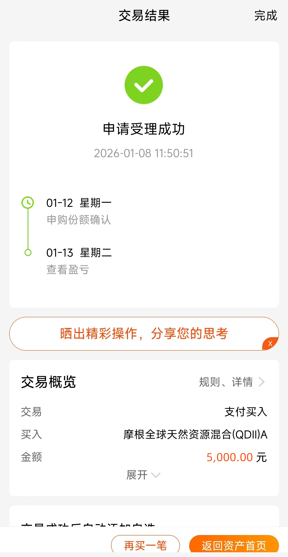 我今天的动作是入手了$摩根全球天然资源混合(QDII)C$(019578)和$摩根全球新兴市场混合(QDII)$(378006)。看下表现,天然资源这只,近一年收益大概40%,新兴市场那只,收益也接近这个数字,而且这两天表现活跃,都有4%左右的涨幅。考虑到当下国际环境中一些不确定因素,资源品类,如石油、重金属等,其价格可能具备一定韧性,$摩根全球天然资源混合(QDII)C$(019578)就是主要布局全球范围内这类公司的基金。$摩根全球新兴市场混合(QDII)$(378006)则覆盖了像台、韩、港、巴西这些具有潜力的市场,它的行业分布广泛,金融占比24%,信息技术22%,电信服务14%,消费者非必需品11%,工业7%,这样安排的原因是,不同的新兴市场有各自的优势产业,通过这样分散的行业配置,基金能够参与到不同市场的经济增长中去。当前全球资产价格呈现出上涨的态势,投资于全球性的资源公司是一种选择。新兴市场方面,台股、韩股等市场也有不错的表现。最关键的一点是,摩根这两个产品目前都还有10万的申购额度,在如今这个QDII基金额度普遍紧张、很多产品都买不到的情况下,这10万额度是一个难得的参与机会,对于希望进行全球资产配置的人来说,是个值得注意的选择。#暖阳创作计划#