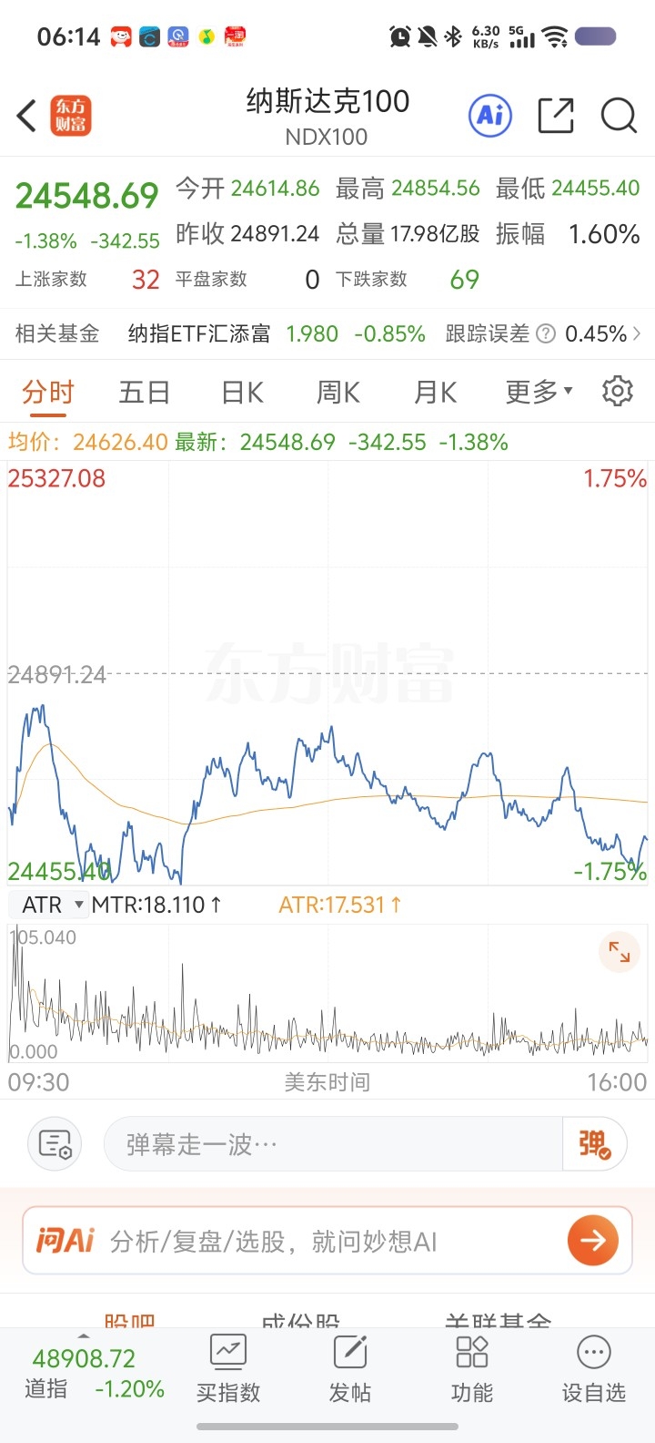 纳指连续三日下跌引发担忧