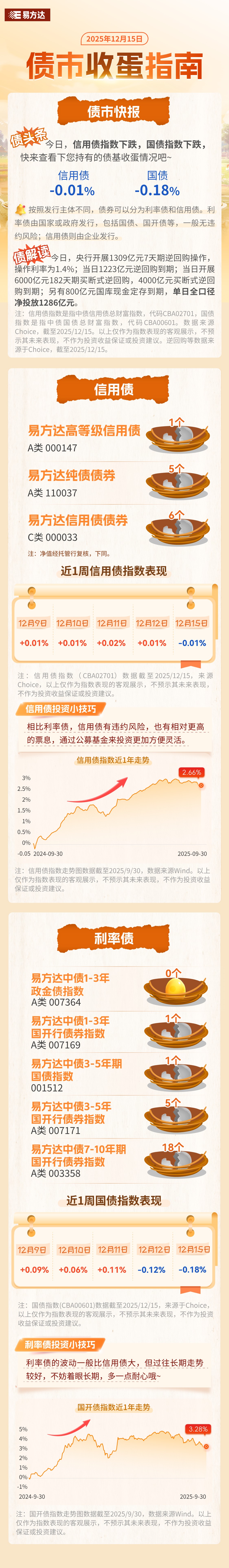 12月15日,信用债指数下跌、国债指数下跌,快来查看您持有的债基收蛋情况吧!