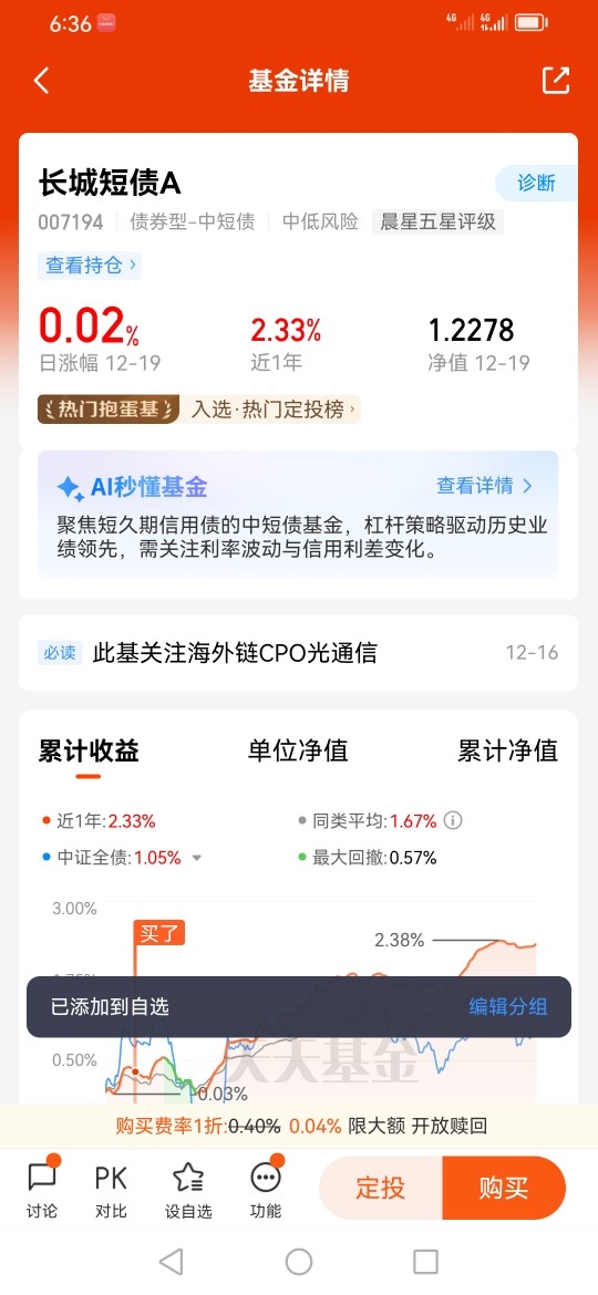 4)长城短债A(007194)的长期业绩表现是有目共睹的,我们投资债基,自然会去关注那些长期表现优异的基金产品