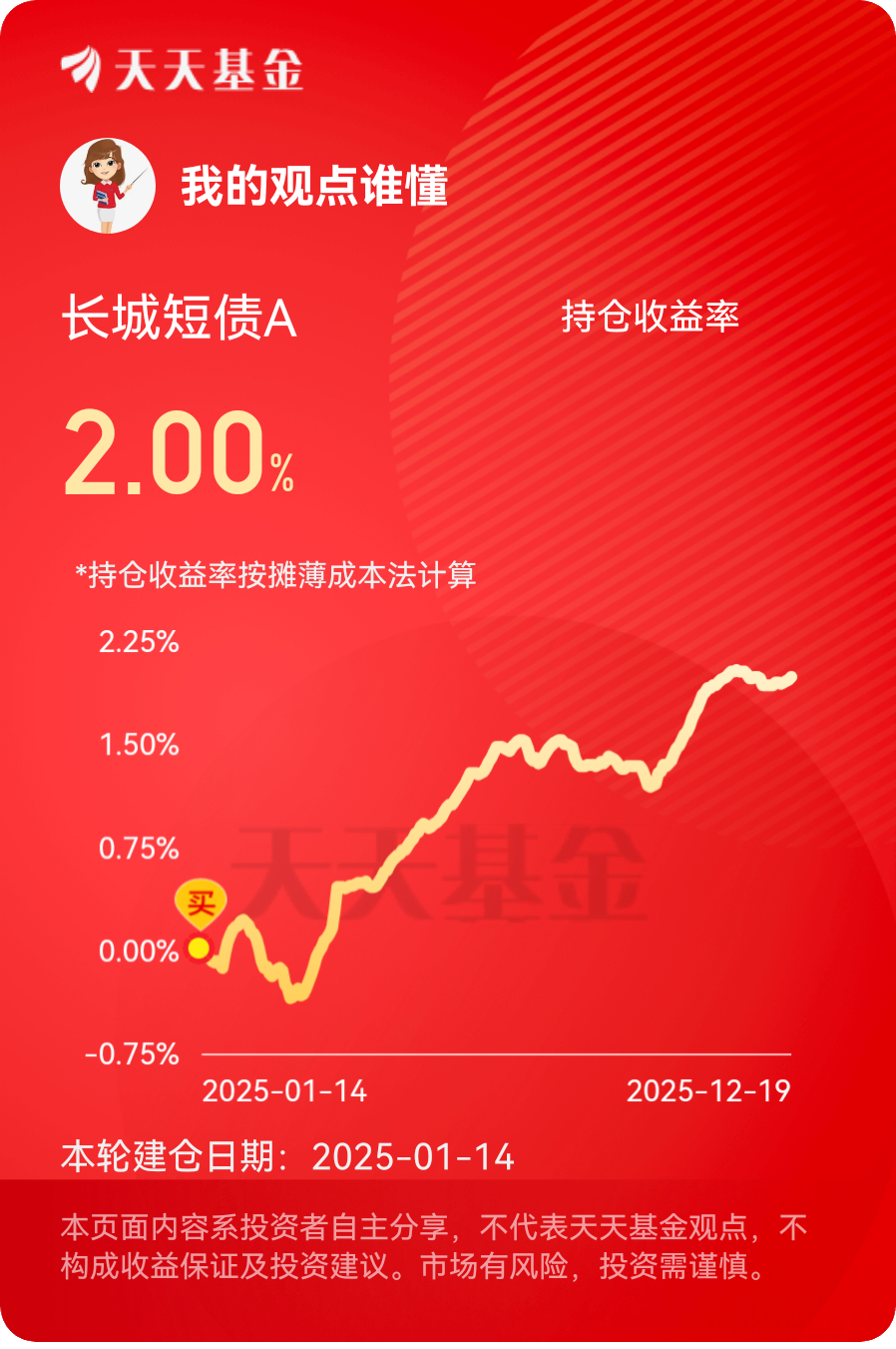 因此我选择了长城短债A(007194),我相信它可以带给我稳稳的幸福。@长城基金