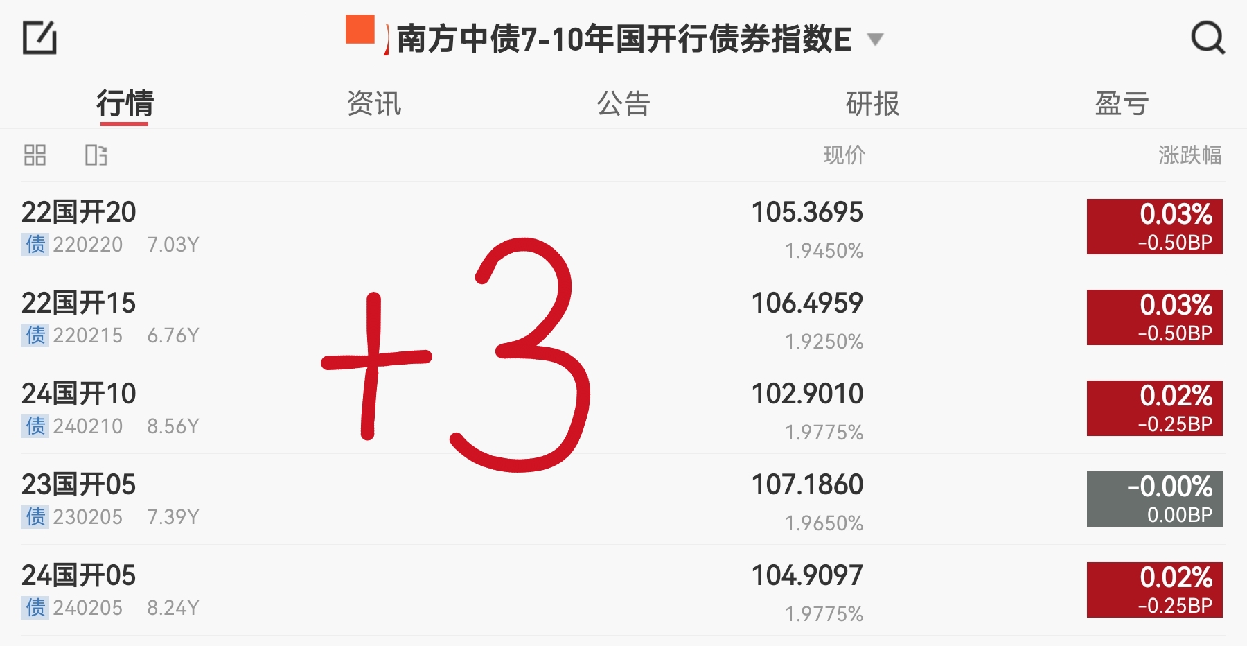 目前利率债长端债券大部分都已经红了,而短端债券没什么动静,还都处于下跌状态。