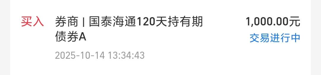 信用债:今天建仓$国泰海通120天持有债券发起A(OTCFUND|021260)$,买入1000元,布局信用债基金。