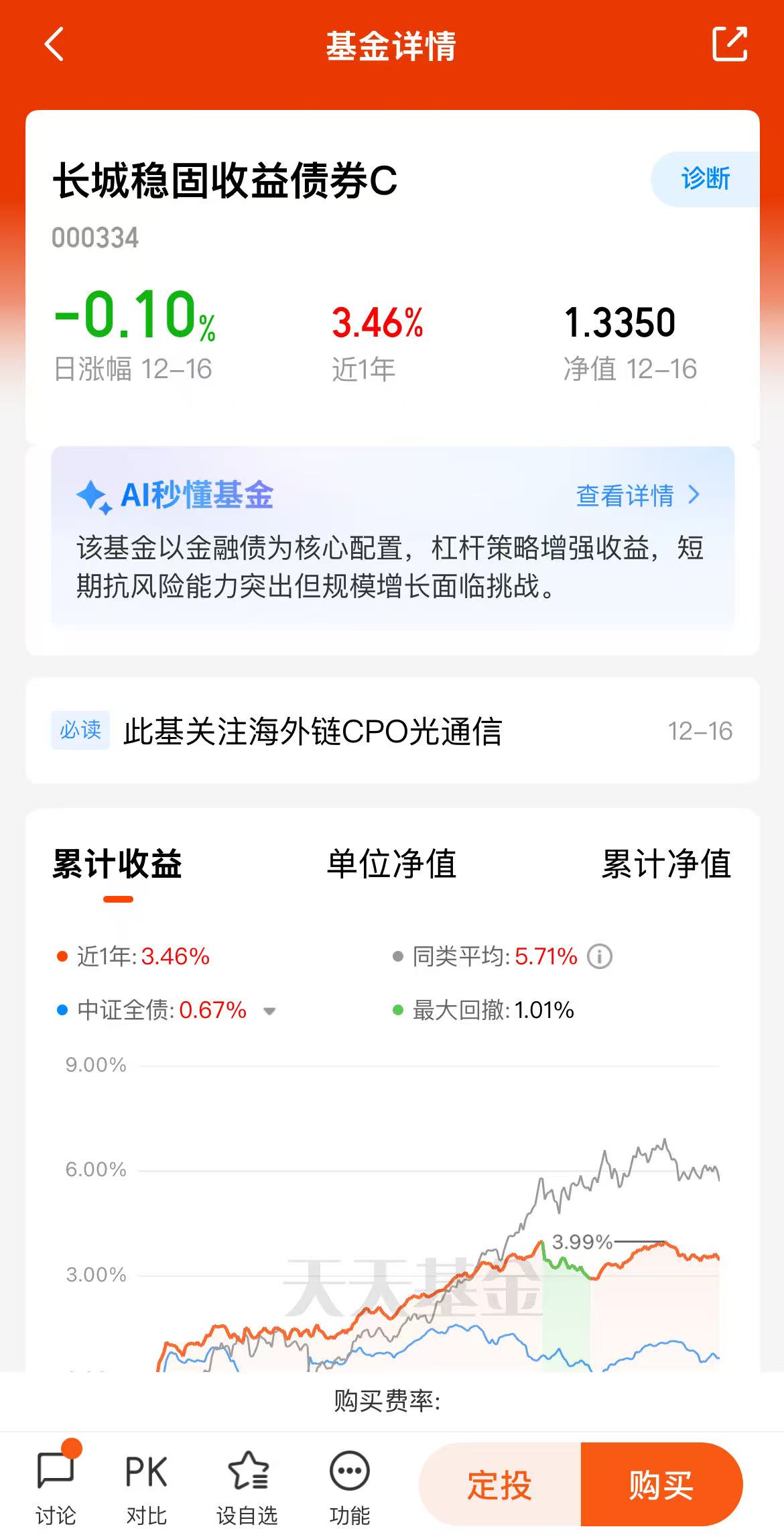 长城稳固收益债券C通过"纯债打底+含权资产增强"的策略设计,在当前市场环境下确实为投资者提供了一个风险收益比优异的稳健投资选择。对于希望在年底震荡市中"守正出奇"的投资者,该基金提供了风险可控的收益增强机会。它不是收益最高的产品,但能在控制风险的前提下提供相对稳定的回报,特别适合追求"稳中有进"的投资者在年底震荡市中配置。@长城基金