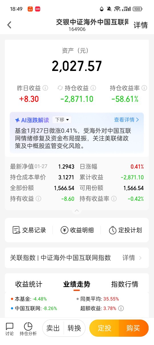 $交银中证海外中国互联网指数(LOF)A(OTCFUND|164906)$