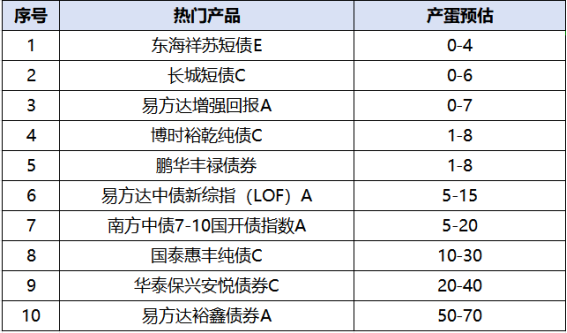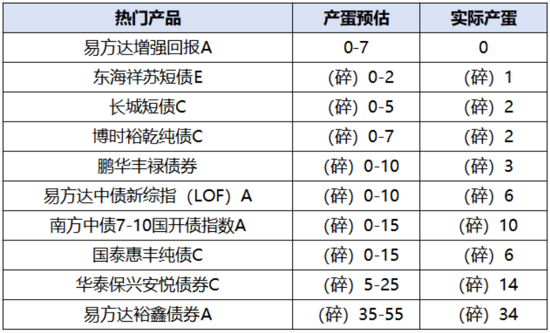 热门产品产蛋预估:(根据16:00行情预测,仅供参考,以实际产蛋为准)
