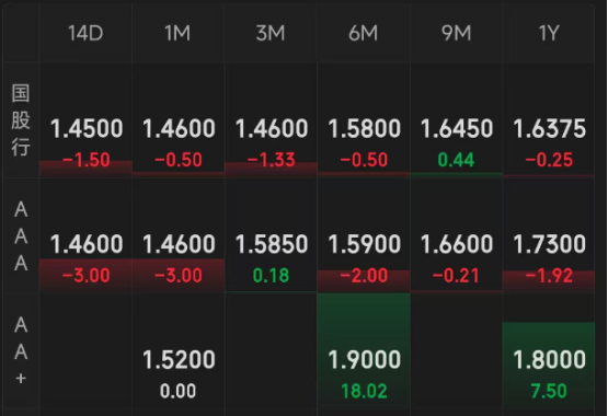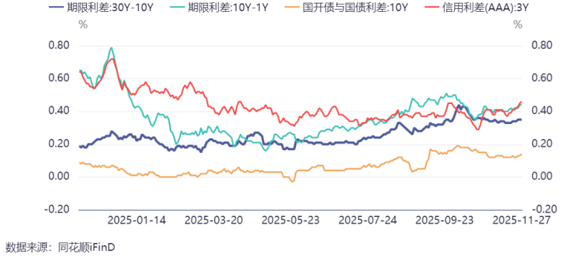 债市今天有明显回暖,早盘十年期国债活跃券收益率一度下行超过2BP,盘中小有回落,不过反弹还是比较明显的。国债期货和信用债还是涨跌互现,值得一提的是,利率债今天全面翻红,暖意十足。期限利差持续走阔。