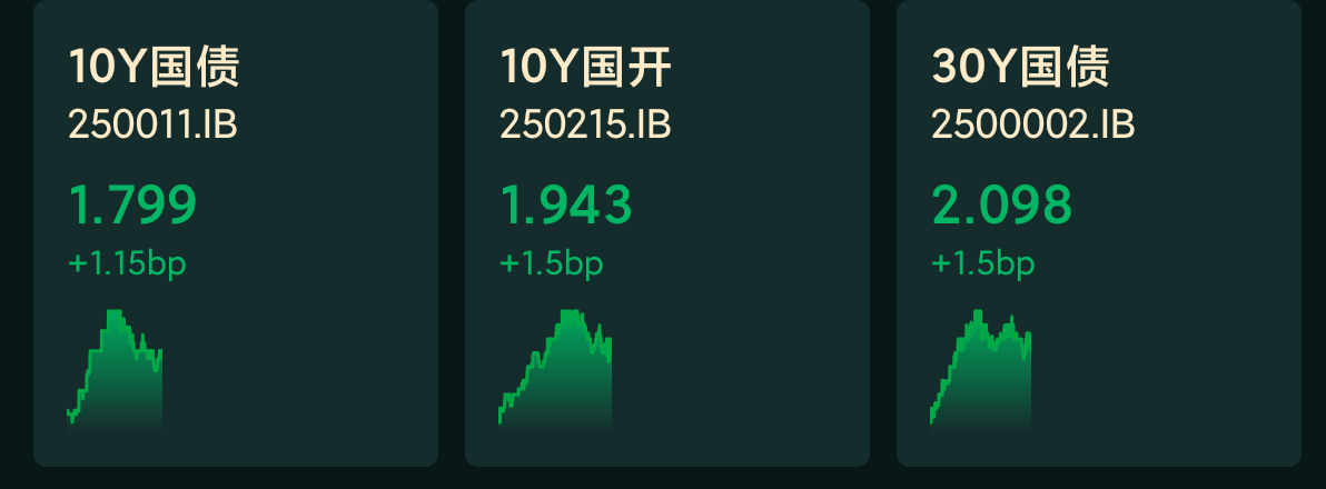十年期国债收益率:1.799%,+1.15BP(国债收益率越跌,债市越涨)