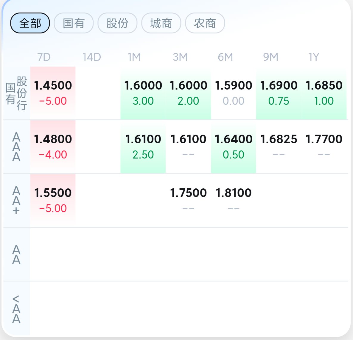 DR001报1.41%左右,DR007报1.46%左右,资金情绪均衡偏紧(CNEX资金面情绪指数在53)