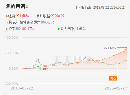 方案2回测验证至今/2026-2-27:收益271.68%、最大回撤-11.68%,年均收益20%+。