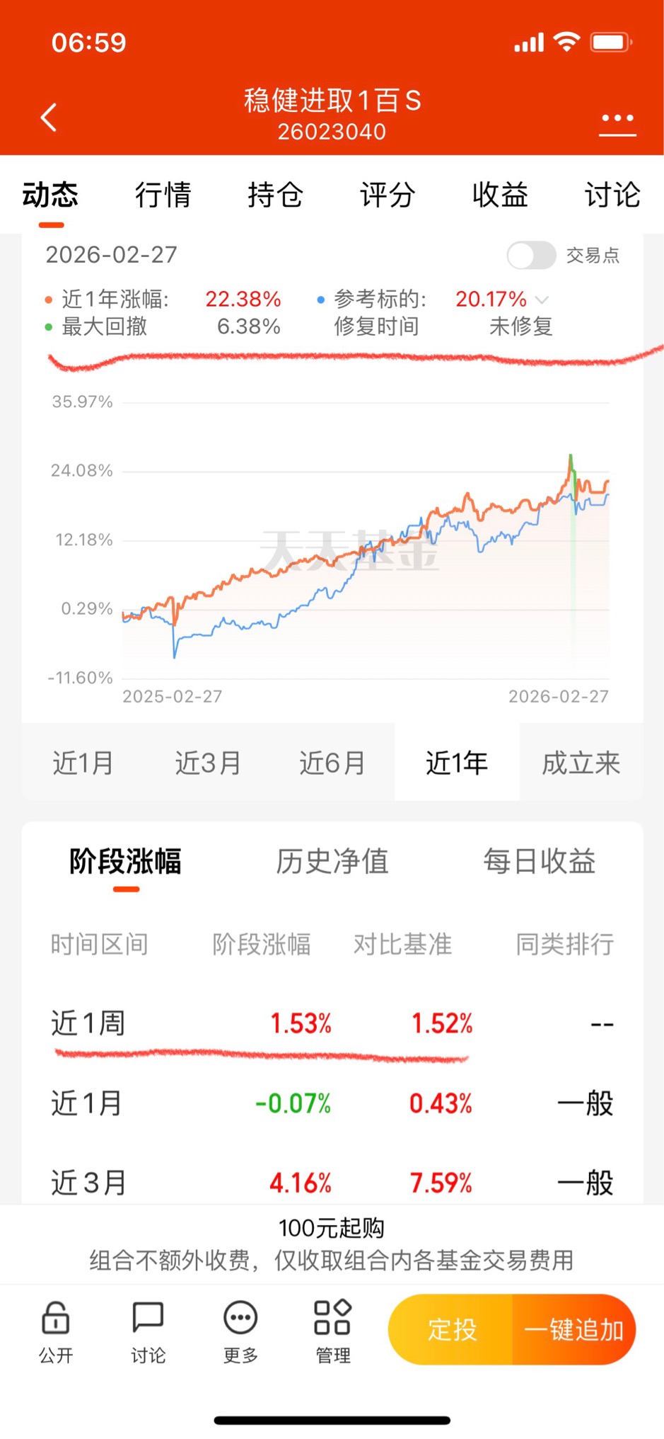 方案1回测验证至今/2026-2-27:收益157.4%、最大回撤-8.83%,年均收益20%+,5年收益达100%+。所以潇哥命名为稳健进取1百指数组合。
