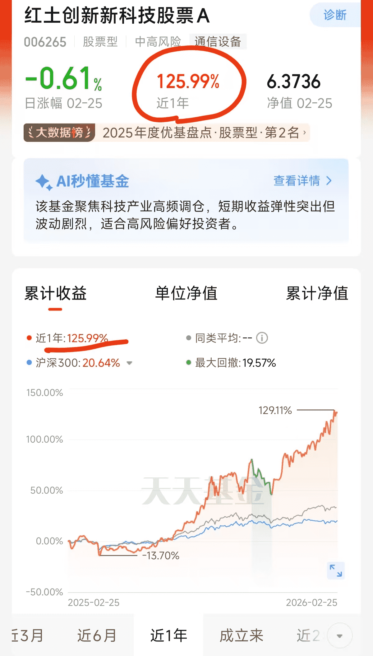 来唠唠红土创新新科技股票A这只基,节后这波行情它基本全赶上了,近一周就涨了1.44%,前几个月刚出的红土创新新科技股票C,跟A类也是同样的配方,近三个月涨了53.32%,最近都在说,CPO是解决算力发热和耗电最好的办法,Lumentum这种国外大厂订单都排满了。再看这基金的持仓,前十里有八只都是光模块和PCB,这就等于把给英伟达供货的那些公司都买齐了,省心得很$红土创新新科技股票A$