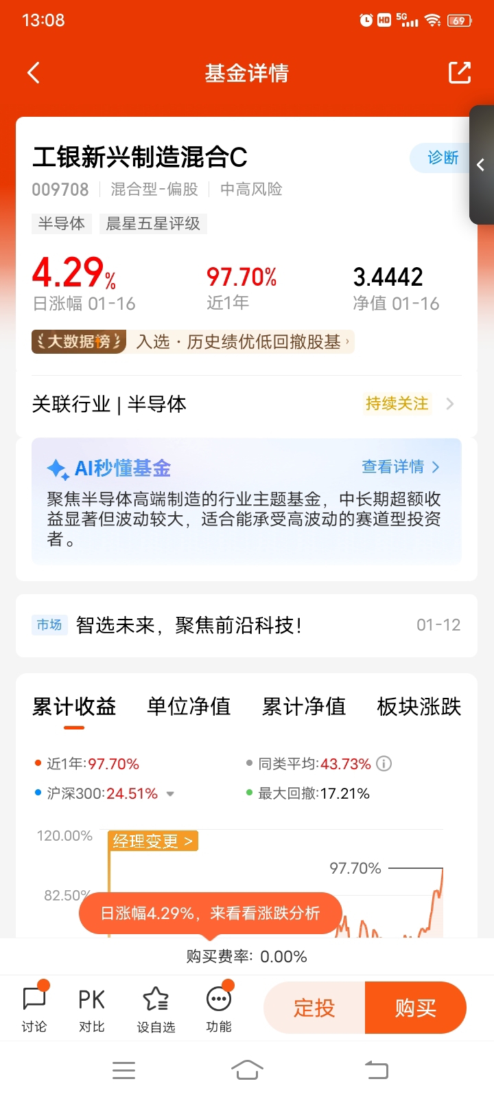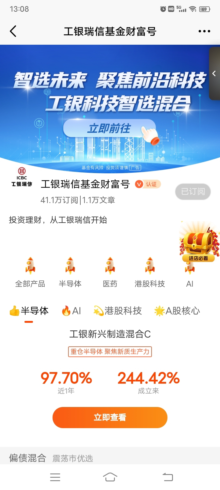 回到$工银新兴制造混合C$ 这只基金,它重点关注半导体行业,而半导体正是AI应用的核心硬件支撑。AI应用的爆发会直接拉动对算力芯片、存储芯片的需求,这就给半导体行业带来了持续的增长动力。工银瑞信作为老牌基金公司,管理规模超8500亿,投研实力比较扎实,在科技制造领域的布局也有积累,这只基金在配置上应该能较好地把握AI应用和半导体的联动机会。