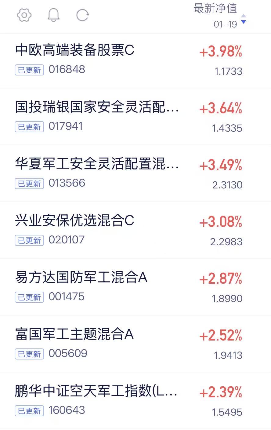 $易方达国防军工混合C$ 今天上涨2.87%