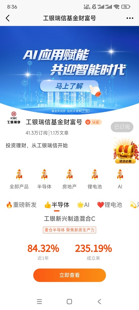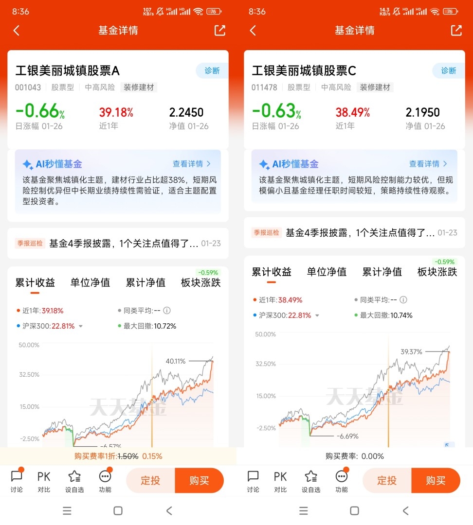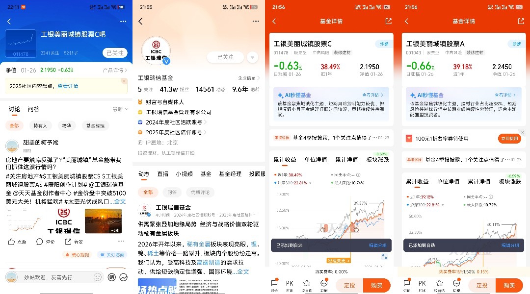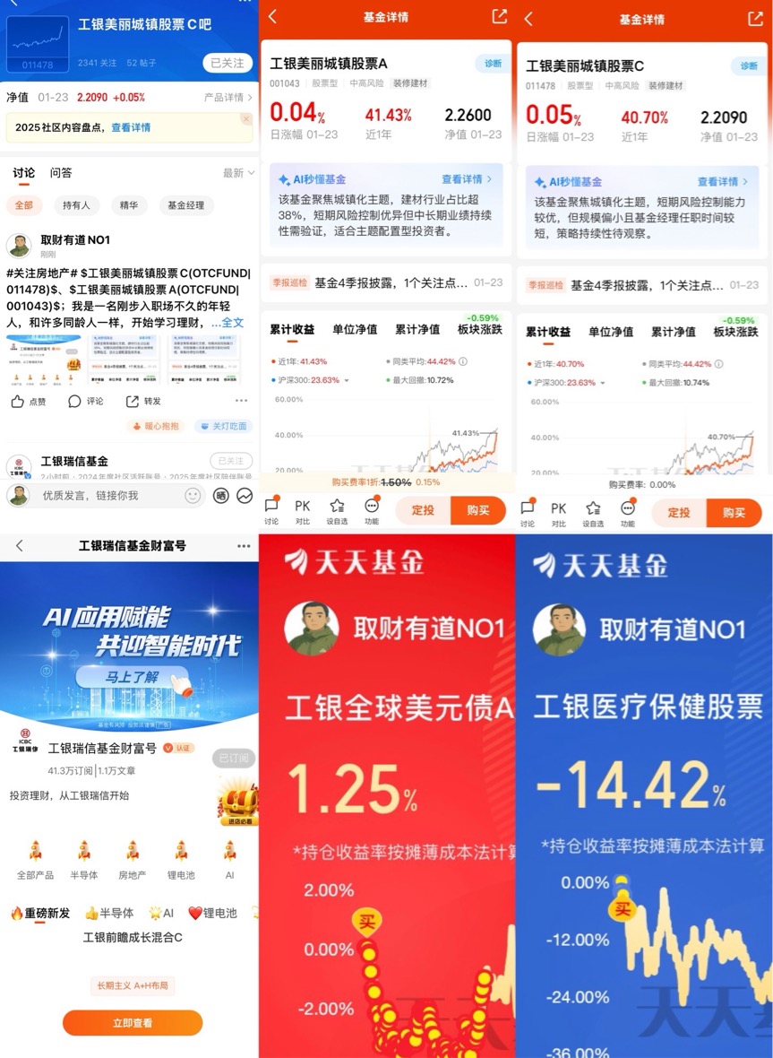 1、关注@工银瑞信基金 财富号,将 $工银美丽城镇股票C(OTCFUND|011478)$、$工银美丽城镇股票A(OTCFUND|001043)$加入自选;