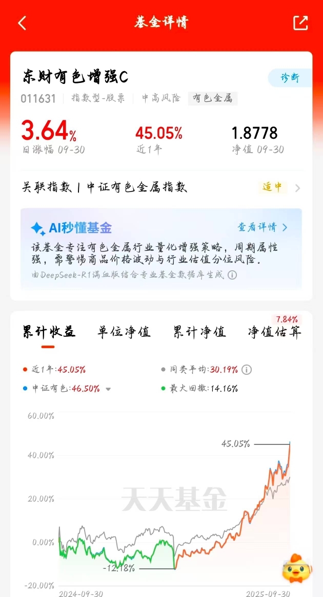 我拿的西藏东财中证有色金属指数增强C开盘就跑啊,目前估值超7%了都,这只最近总创