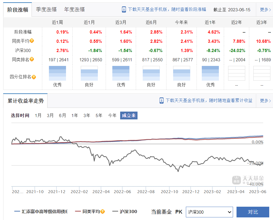 汇添富中高等级信用债E是中高等级信用债,不是追求收益高,而是保证安全性高。经济不好,如果债券的安全性不好,非常容易踩雷。基金在持有中高等级信用债券的基础上,再追求相对好一点的收益。E类免申购费,7天以上免赎回费,足以代替货币基金。如果长期理财,也可以选择属于同一只产品的A类(011658)。
