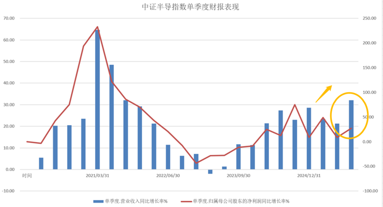 半导体产业ETF联接基金(A:020464 / C:020465)跟踪的中证半导指数(931865)三季度营业收入同比增长32.12%,归母净利润同比增长27.13%,均呈现向上拉升趋势。