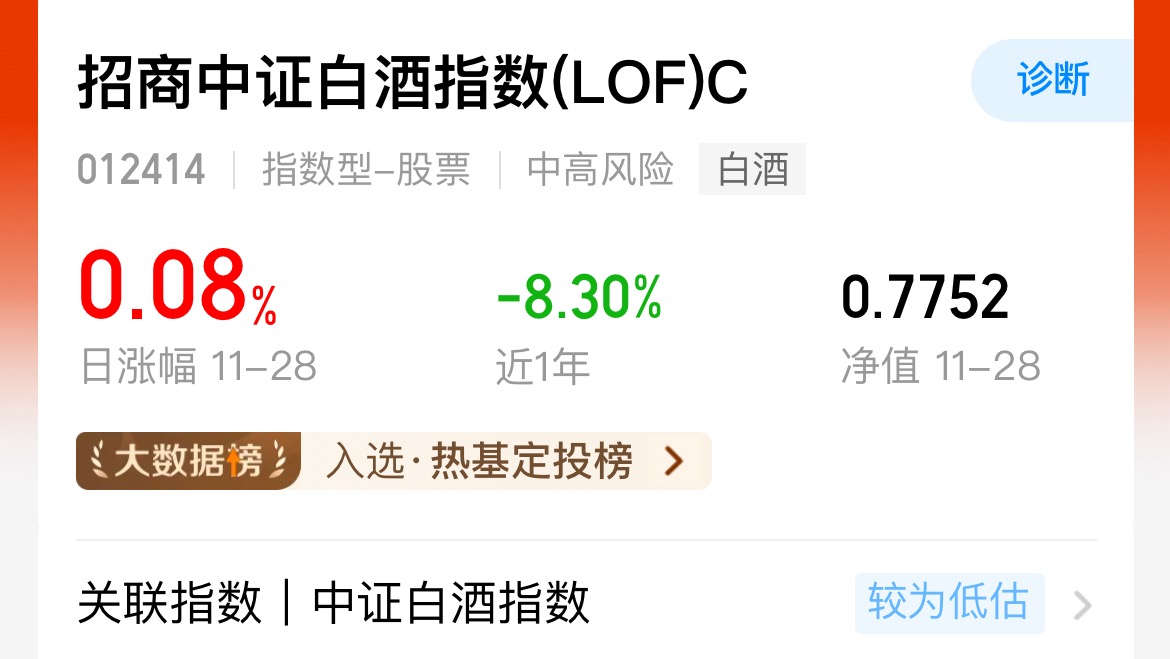 今天是12月的第一个交易日,大盘表现的还不错,目前三大指数都是收红的,从上个月底开始五个交易日的趋势逐渐慢慢地走稳了,个股也是呈现长多跌少的态势,表明市场抛压已经很小了$招商中证白酒指数(LOF)C$ 白酒板块也在慢慢地走稳,近期又有利好消息,再加上临近年关,这个板块还是非常值得我看好的