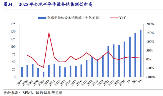 先进制程竞赛与存储芯片升级(如3D NAND堆叠层数突破300层、DRAM向更先进制程演进)大幅提升了刻蚀、薄膜沉积等关键设备的用量。国金证券指出,同等产能下,设备需求密度可达传统工艺的1.7-1.8倍,为设备商带来结构性增长机会。