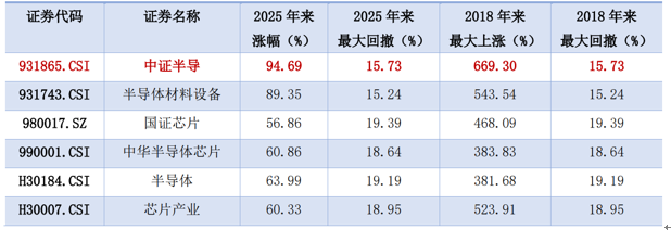 其跟踪的标的指数在同类中表现出较强的弹性——2025年至今涨幅显著,在上一轮完整的半导体周期中也录得可观涨幅。在产业风浪之中,投资于这条确定性更高的“卖铲人”赛道,不失为把握产业核心动能的策略之一。