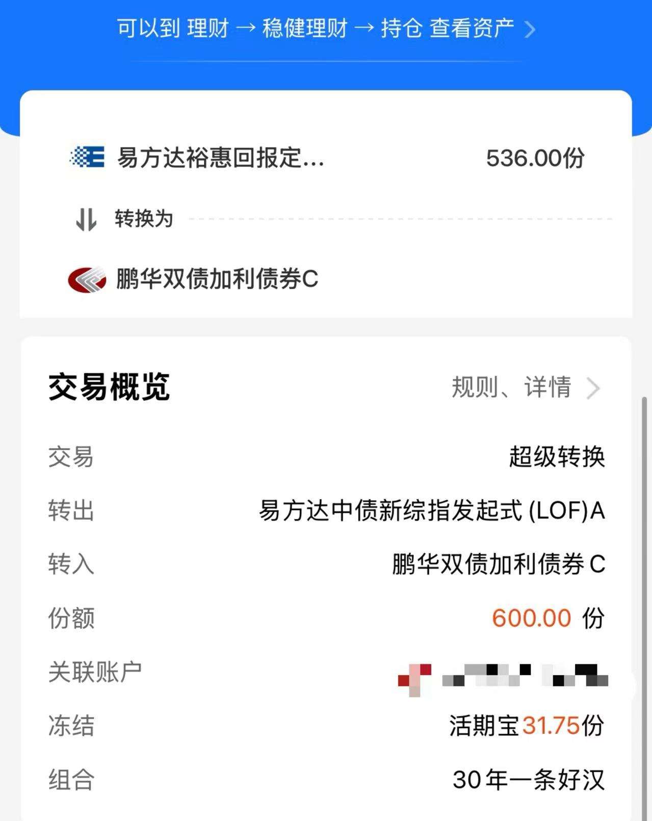 在近期股市连续出现下跌后,买入一些,在原本偏固收逻辑基础上增加了一些资本利得的机会空间,操作一波。选择A类的原因就是,大概率短期我不会动了,底仓逻辑。